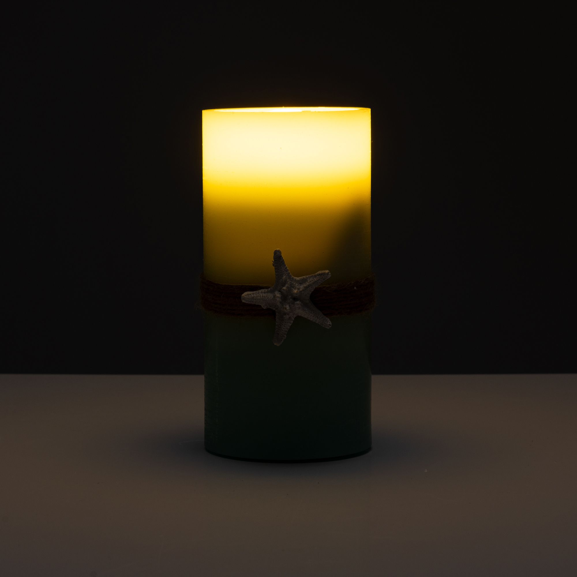 Die ELAMBIA LED-Kerze mit Seestern-Deko ist ein besonderer Hingucker und lässt sich ganz bequem per Fernbedienung steuern.