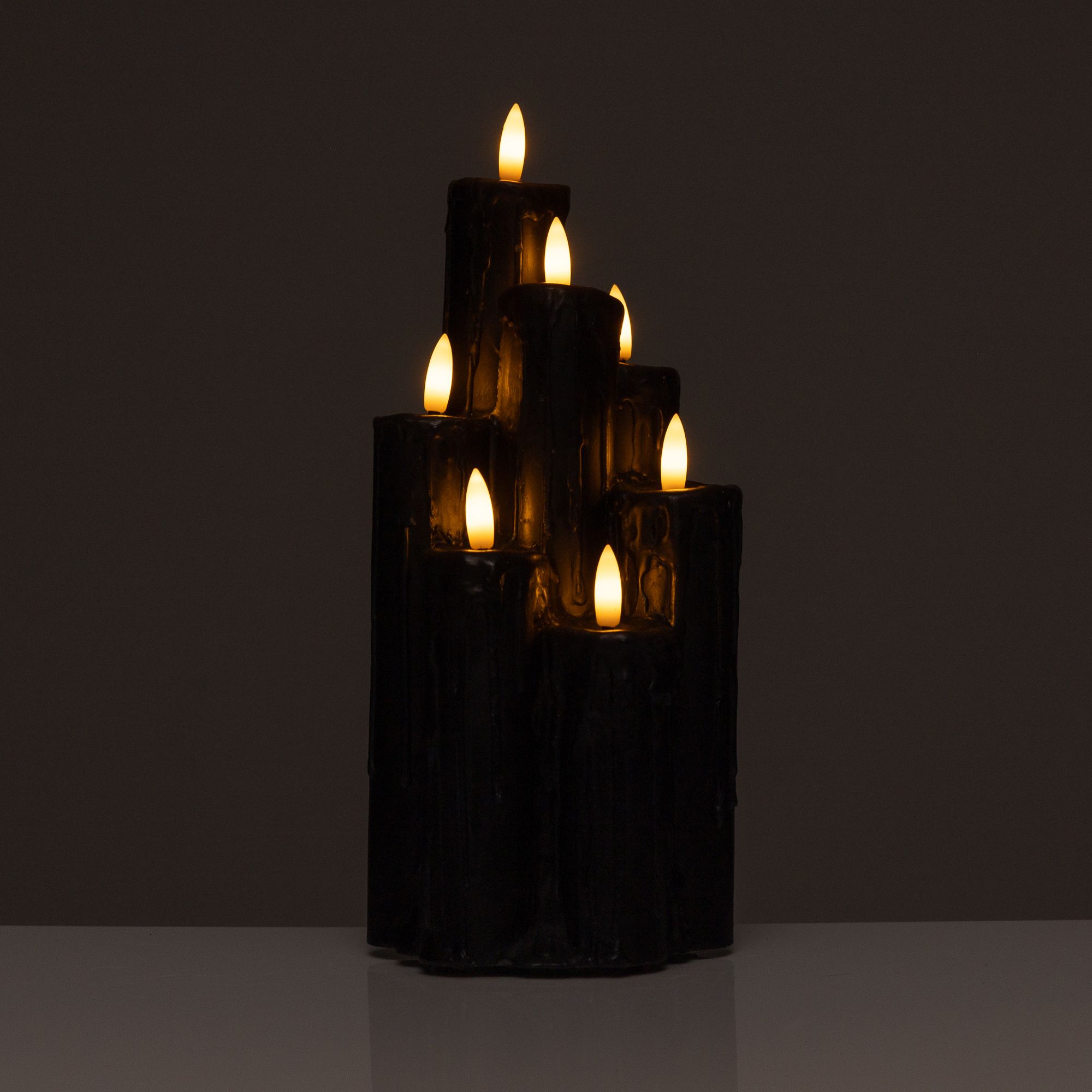 Wer von Kerzendeko einfach nicht genug bekommen kann, wird die 7 ineinander verschmolzenen Echtwachskerzen mit Luma-Flammen von ELAMBIA lieben. Fast 30 Zentimeter ragt dieser besondere Zimmerschmuck in die Höhe und bietet damit einen tollen Blickfang auf Sideboard, Couchtisch oder auch als Bodendeko.