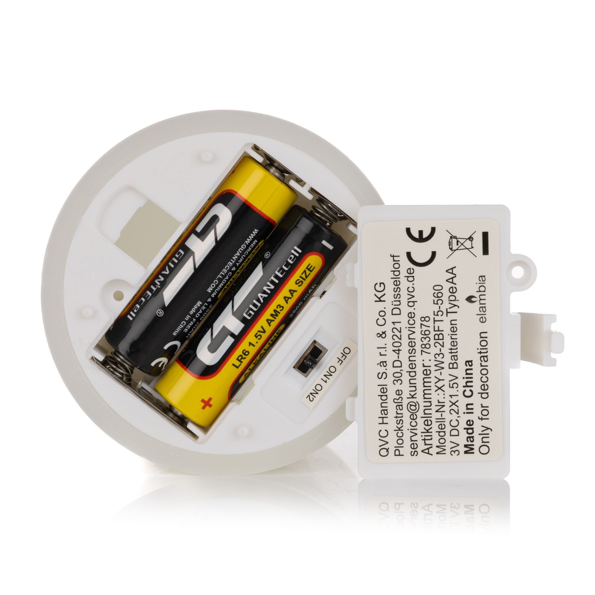- Brenndauer (je Batteriesatz und Kerze): ca. 600 Stunden pro Kerze