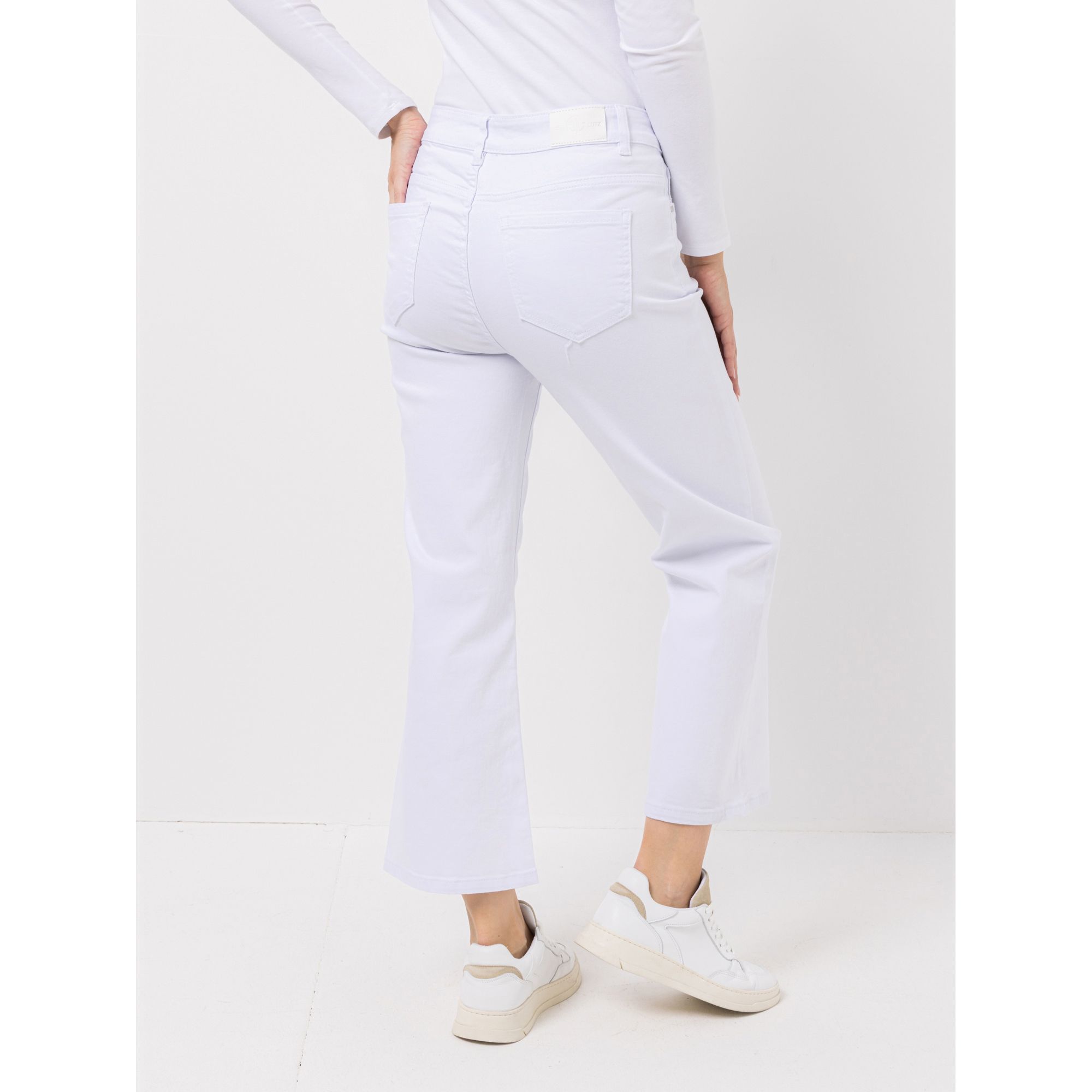 Die EVA LUTZ Hose in 7/8-Länge ist ein echter Hingucker für warme Tage. Mit ihrem ausgestellten Bein bringt sie Schwung in jedes Outfit!