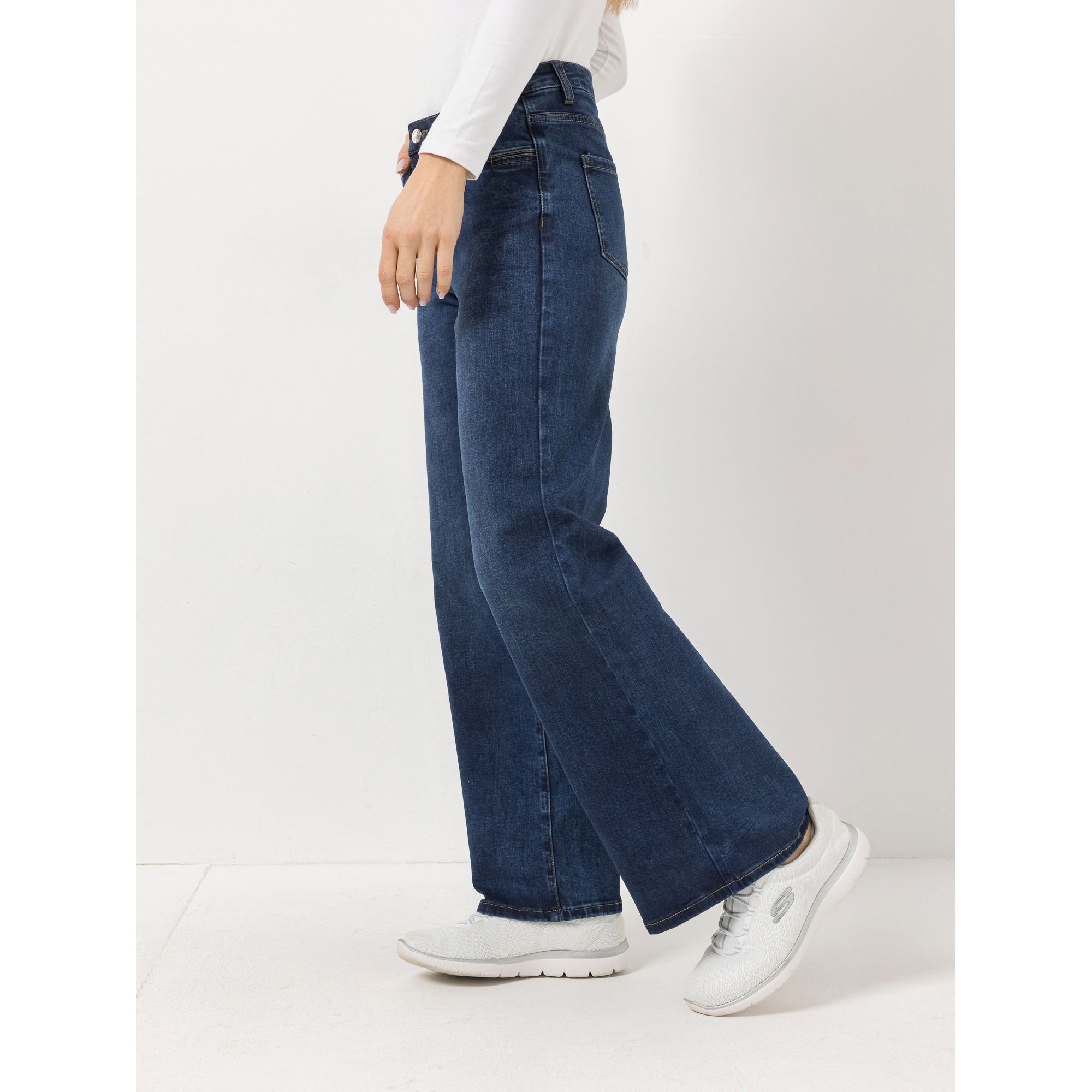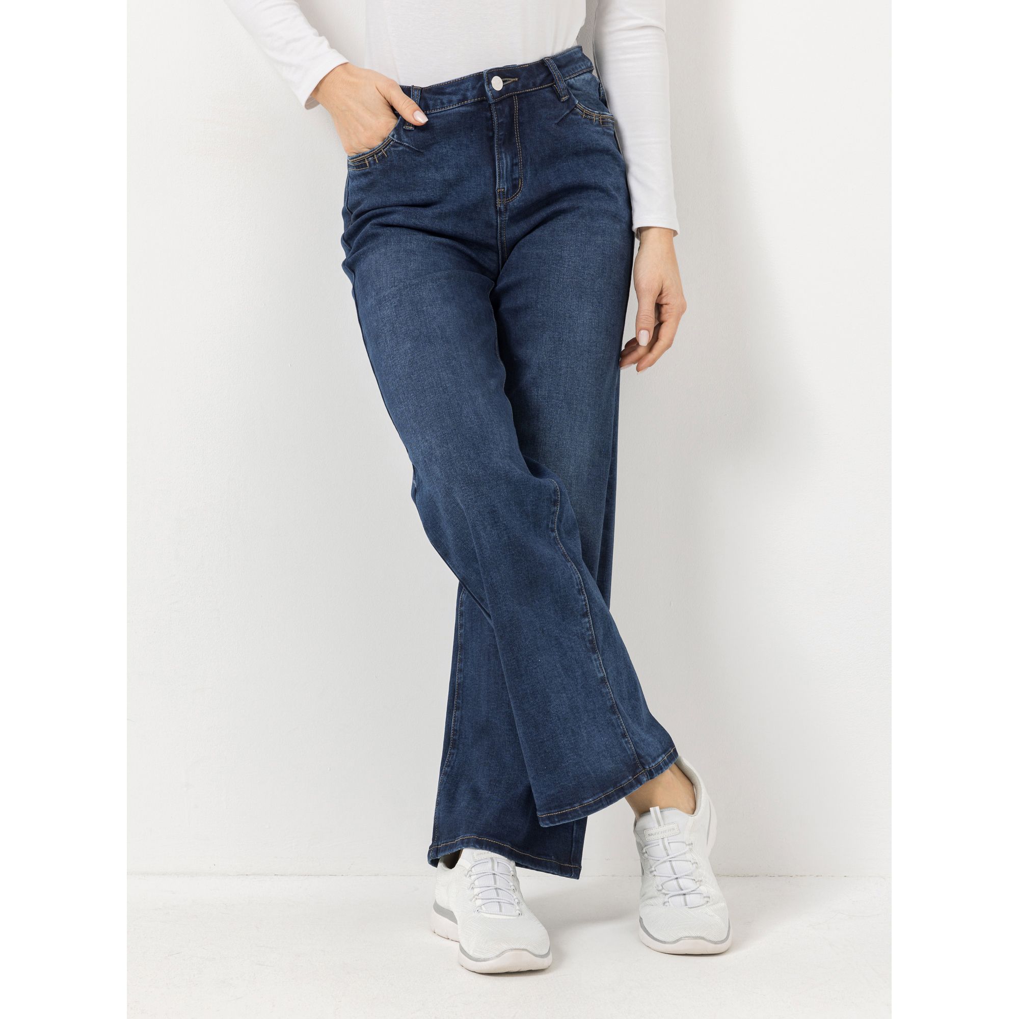 Dunkle Jeans mit weitem Bein
