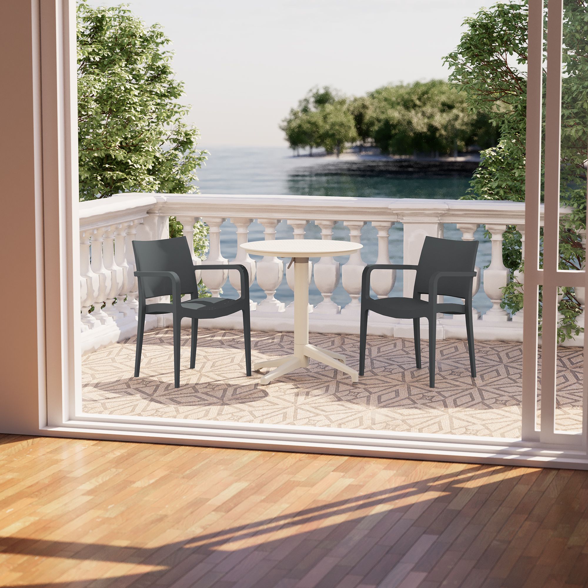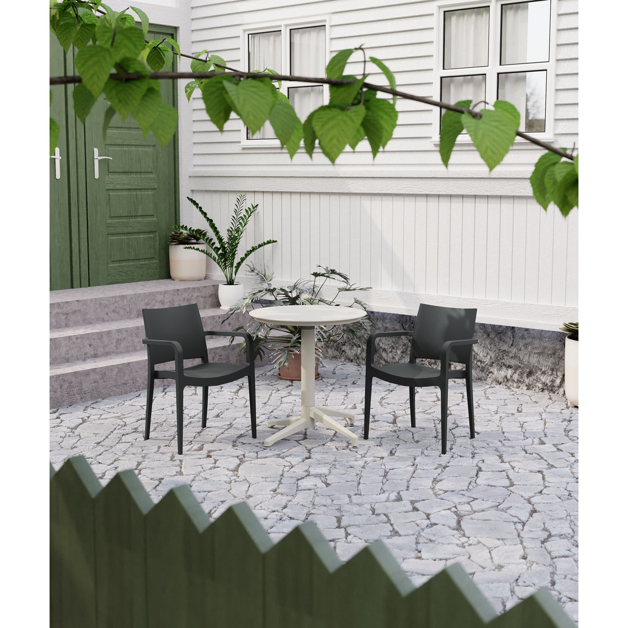 Modernes Stapelstuhl-Set für den Außenbereich