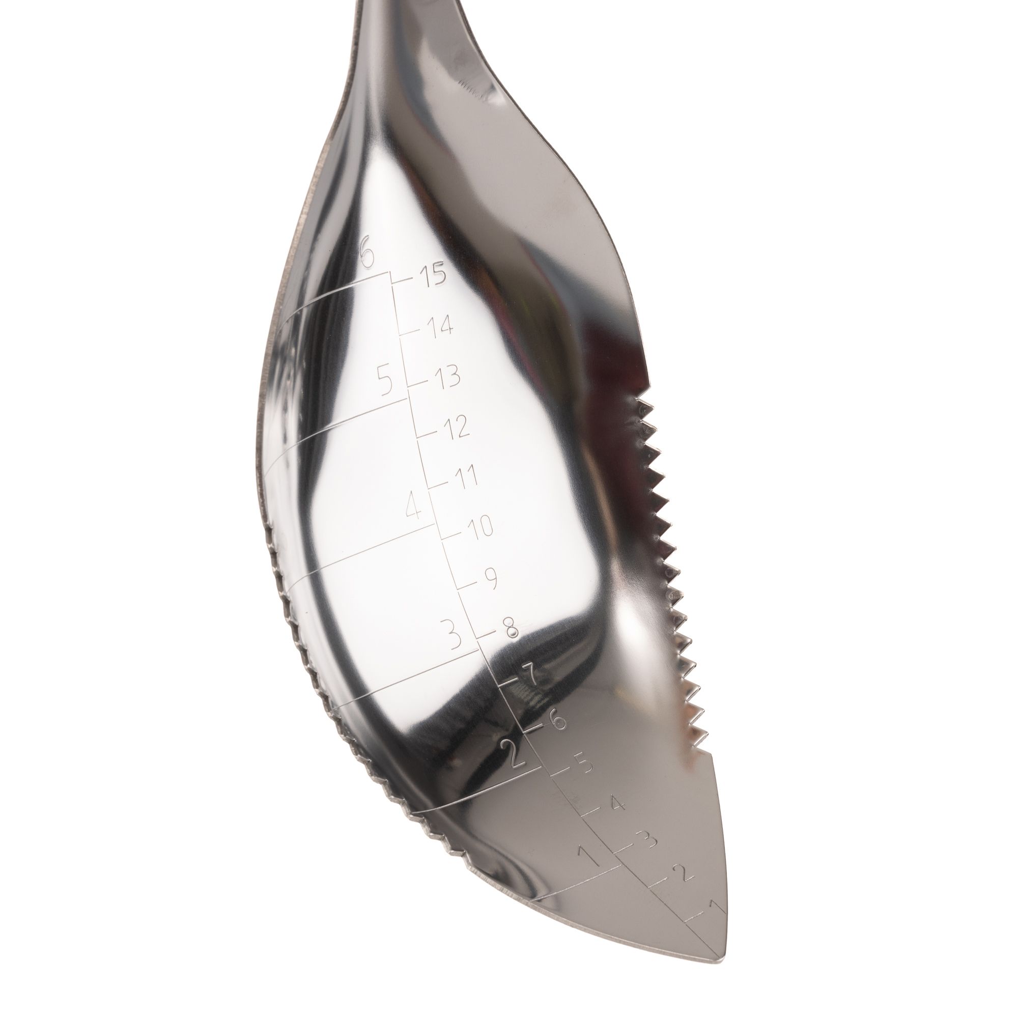 - die Löffelform ist mit Maßangaben in Zoll und Zentimetern versehen, um die richtige Pflanztiefe für Samen und Zwiebeln zu ermitteln