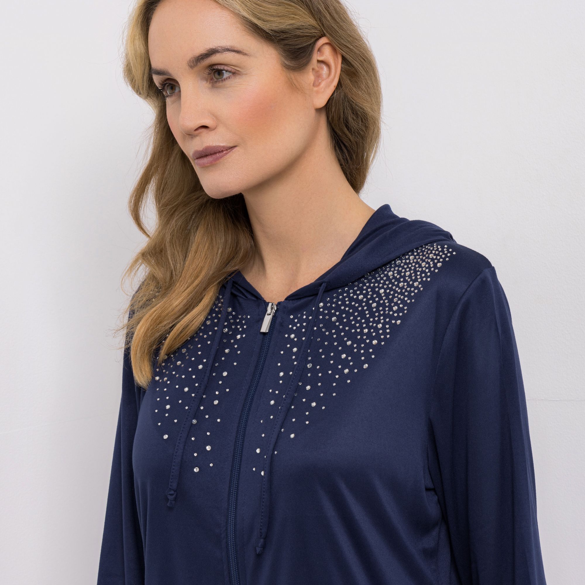 Die Jacke von JERYMOOD kombiniert lässigen Chic mit einem Hauch Glamour und wird dank funkelnder Strassdetails auf der Vorderseite zum besonderen Hingucker für deine Wohlfühlmomente zu Hause.