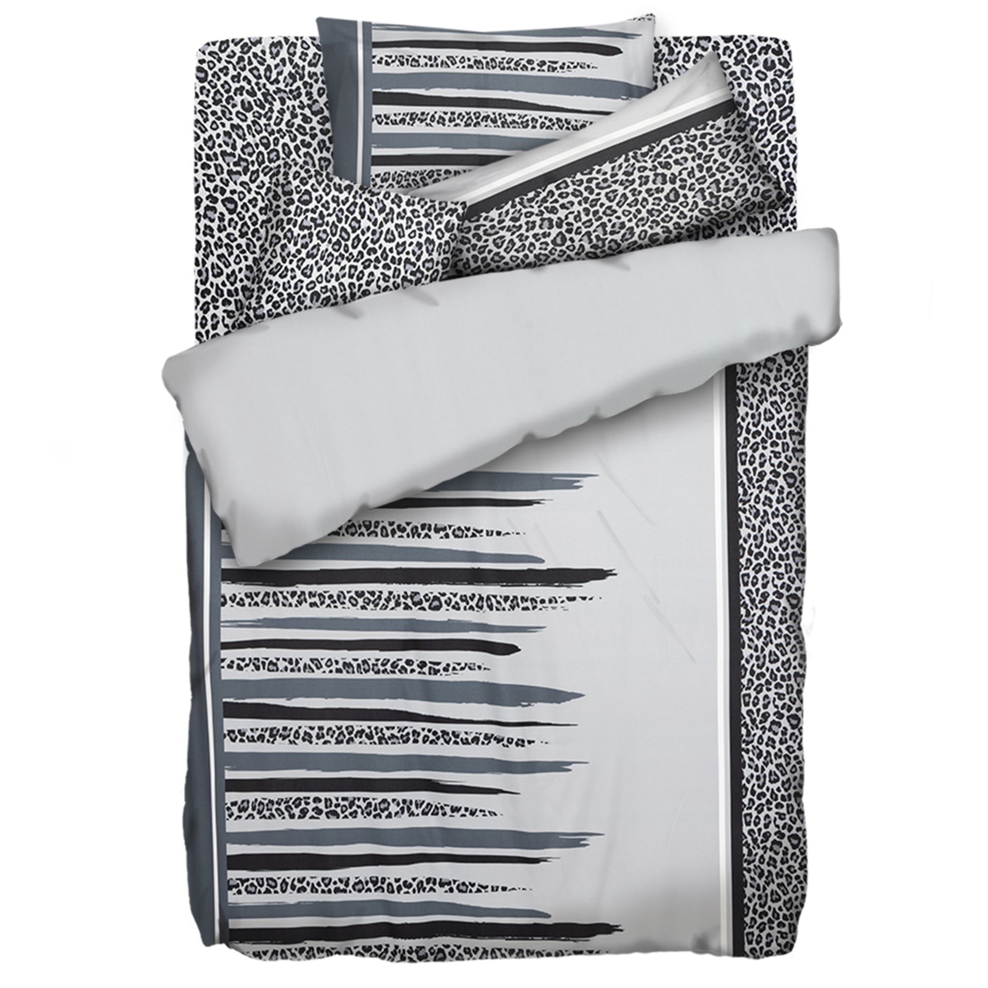 5-teilige JERYMOOD Einzelbett-Bettwäsche zum Wenden mit unifarbener Rückseite und Spannbettlaken mit Leo-Druck