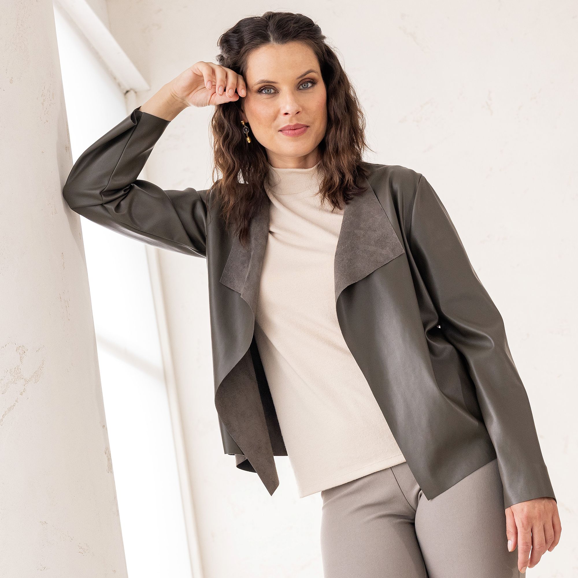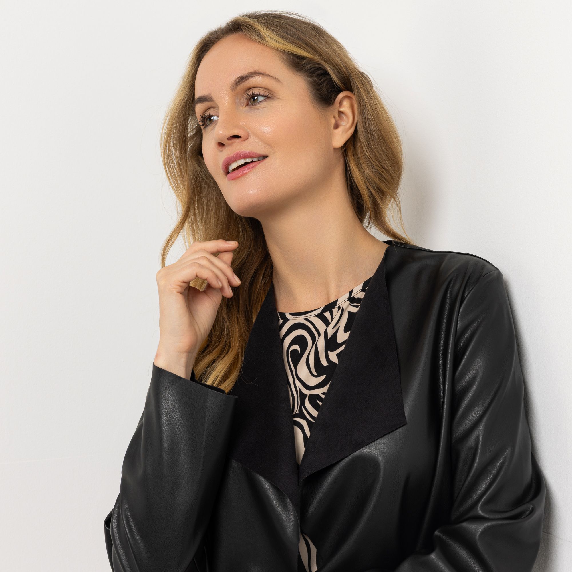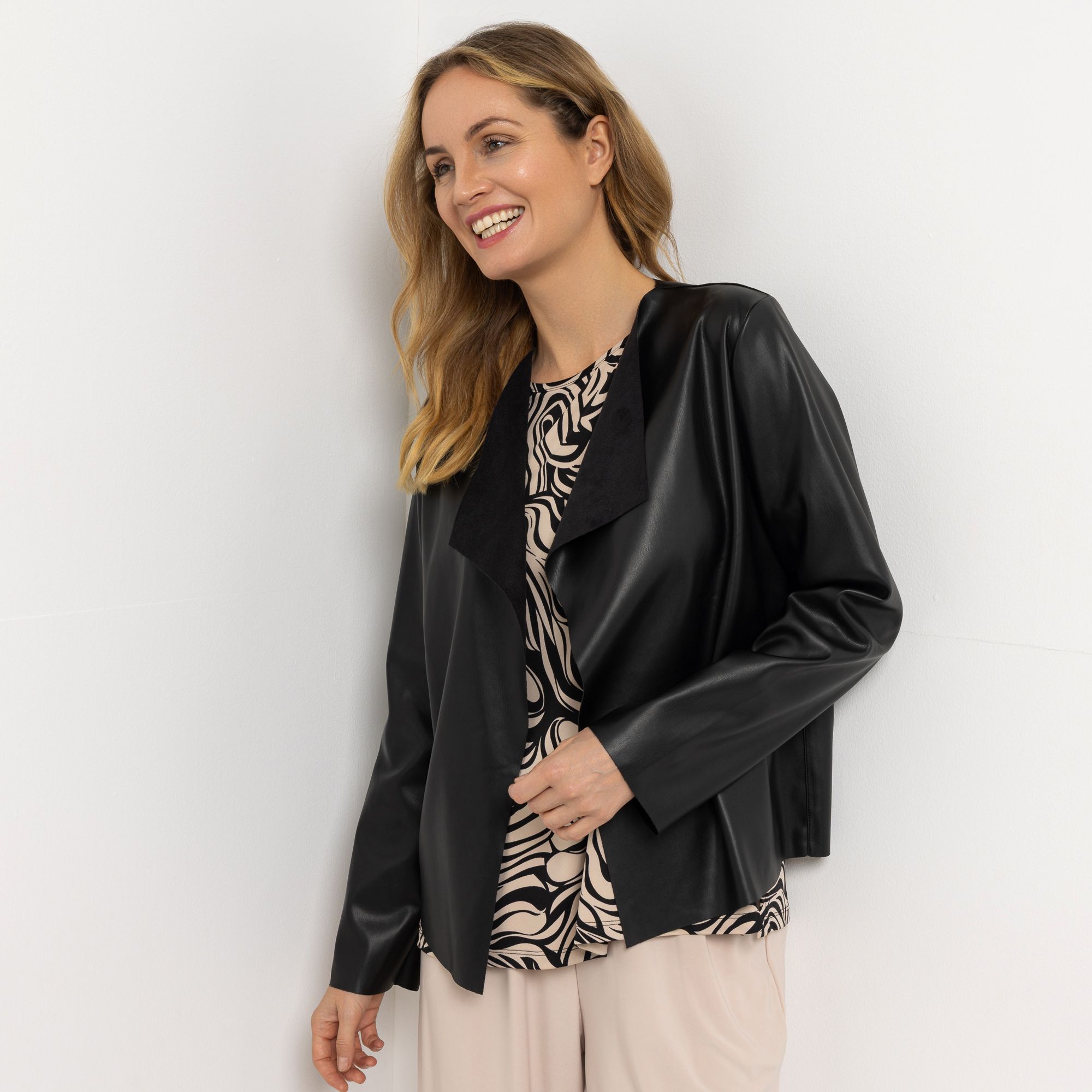 Feminin lässig: Mit KIM & CO. setzt du auf eine Jacke, die femininen Stil und moderne Leichtigkeit harmonisch verbindet. Die Soft-Leder-Optik bringt einen Hauch von Eleganz in deinen Look und unterstreicht die stilbewusste Ausstrahlung. Der offene Schnitt gibt dem Design eine zeitgemäße Note und lässt jede Bewegung entspannt wirken.