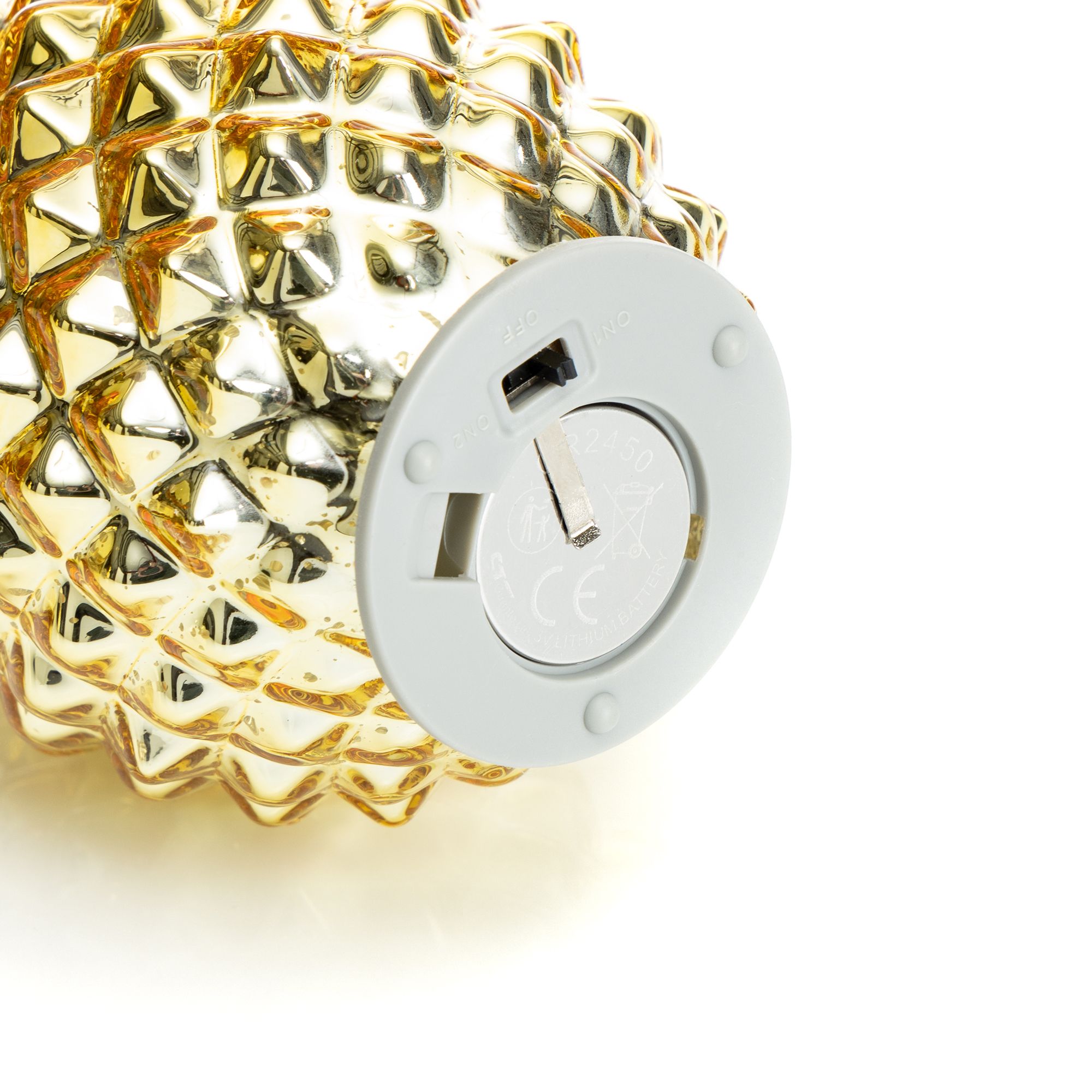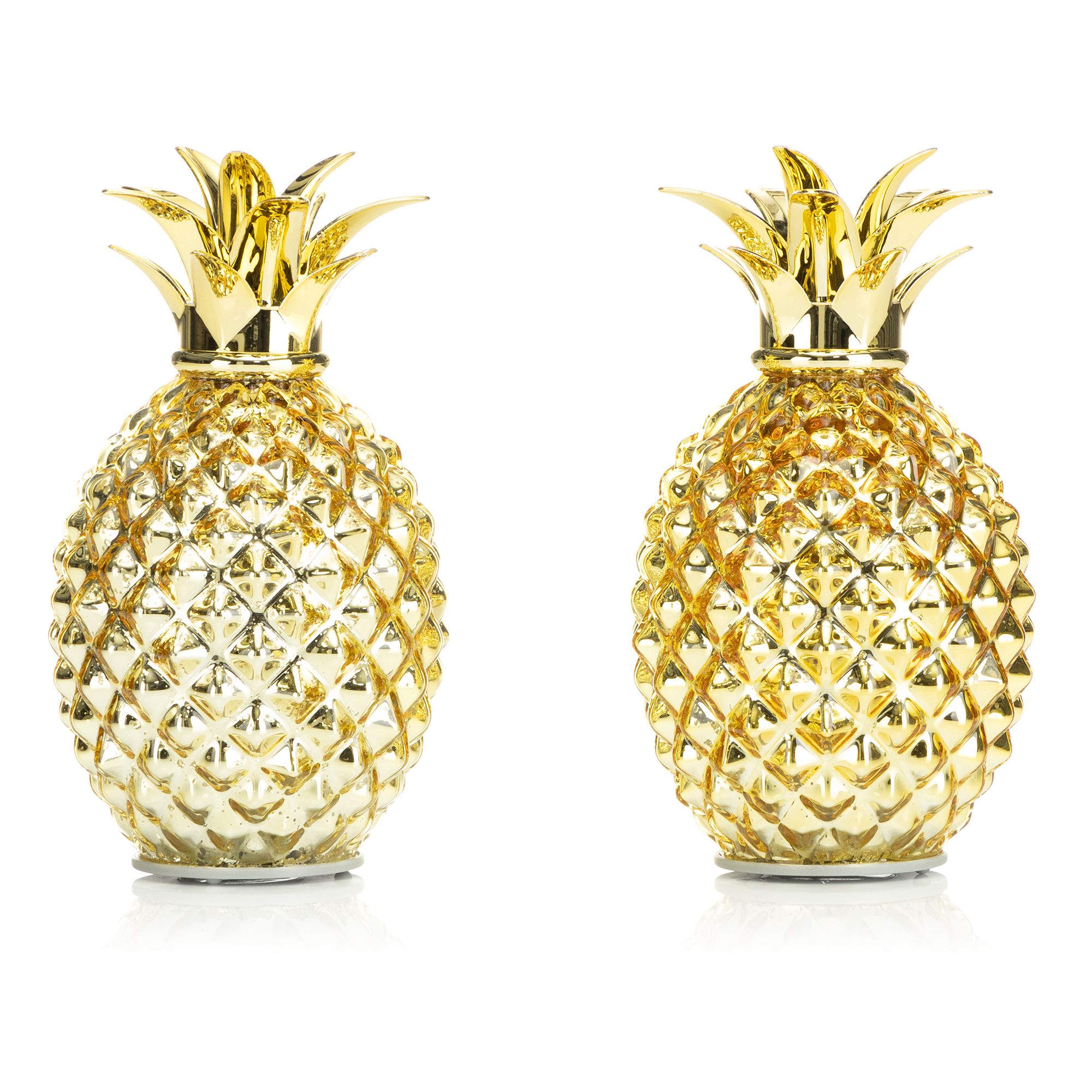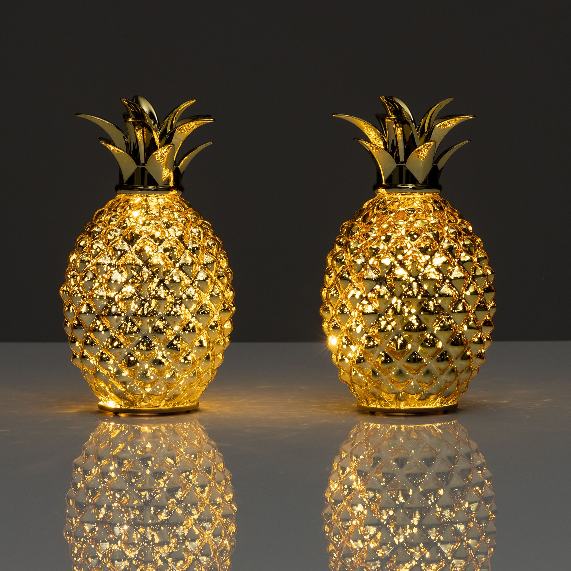 Sommerfeeling für fröhliche Abende – ob mit oder ohne Cocktails: Die LUMIDA Casa Ananas-Leuchten aus Glas mit Mercury-Effekt werden durch eine Draht-Lichterkette zum Leuchten gebracht.