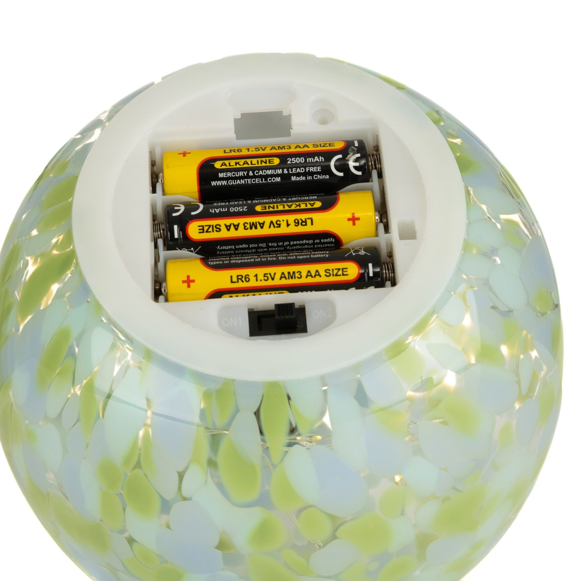 - 3-Wege-Schalter: ON1 (Dauerlicht & Timer)/OFF/ON2 (Dauerlicht+Flackern & Timer)