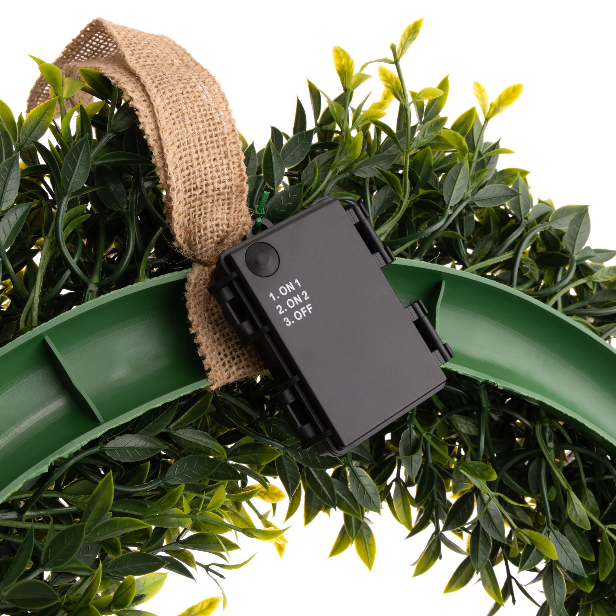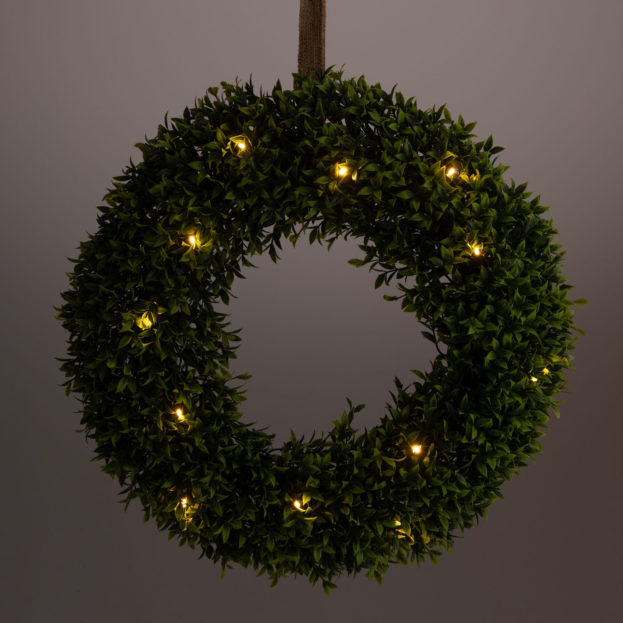Mit dem LUMIDA Flora Deko-Kranz aus künstlichem Grün holst du dir zauberhafte Lichteffekte in den Garten oder auf die Terrasse: Er wird von zwölf warmweißen LEDs erhellt und ist dabei outdoorgeeignet.