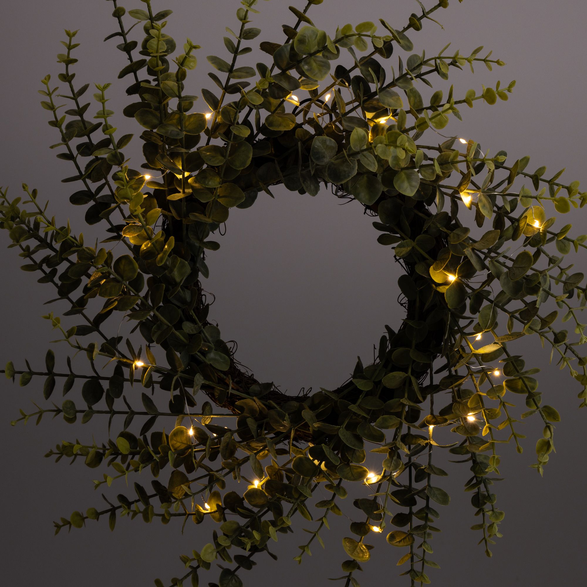Besonders in der Herbst- und Winterzeit entfaltet dieser prächtige Eukalyptuskranz von LUMIDA Flora seine Wirkung. Wenn die Abenddämmerung hereinbricht und die warmweißen LEDs das Blätterwerk beleuchten, kannst du mit allen Sinnen entspannen. Lass dir dieses florale Highlight nicht entgehen, das jedem Raum eine gemütliche Note hinzufügt!