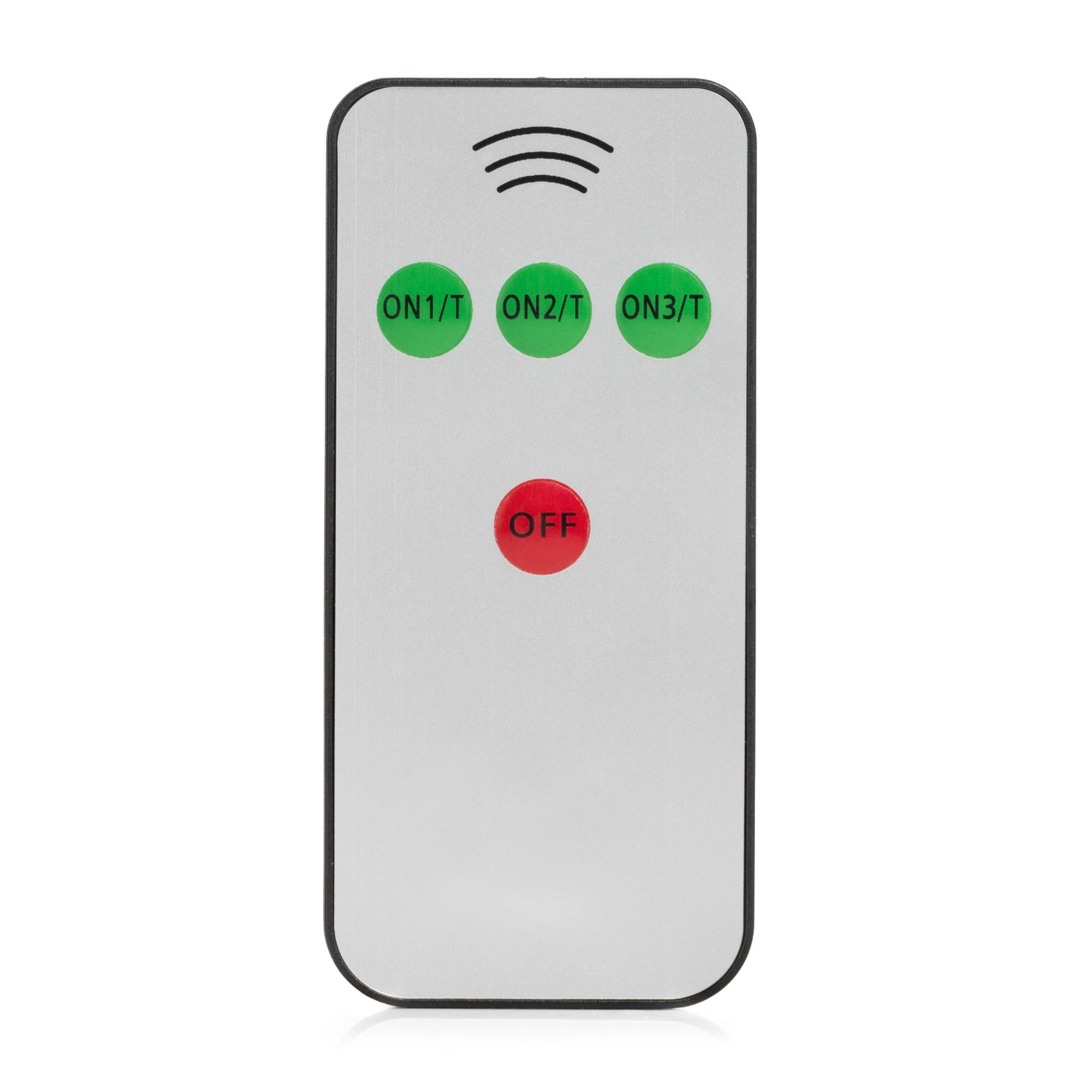 - 4-Wege-Schalter: ON1 (Warmweiß + Multicolor + Timer) / ON2 (Warmweiß + Timer) / ON3 (Multicolor + Timer) / OFF