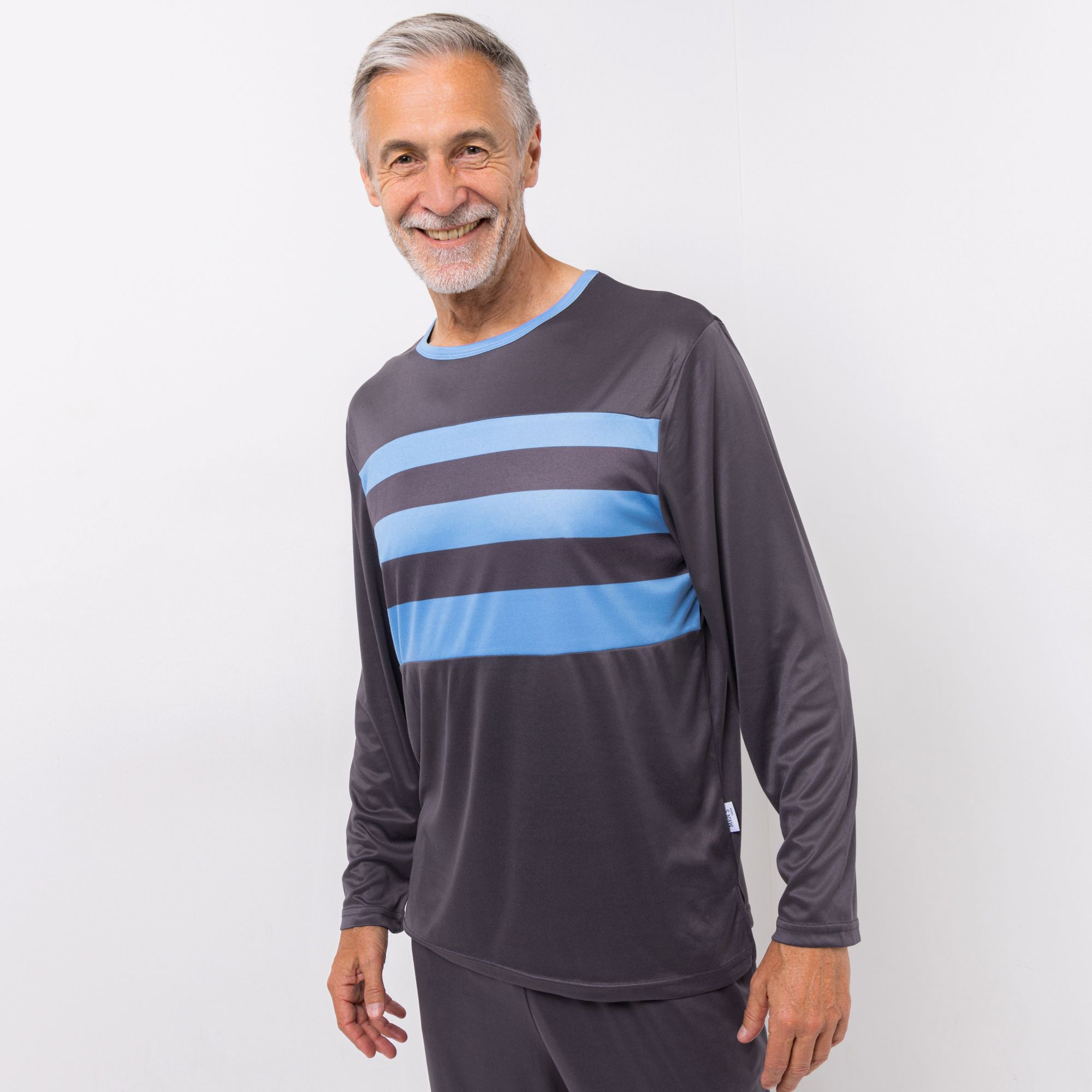 Entspannte Nächte – ob zu Hause oder unterwegs: Das MEN’S TOUCH Set enthält zwei Shirts und zwei Hosen, die sich als Pyjama mal so, mal so kombinieren lassen.