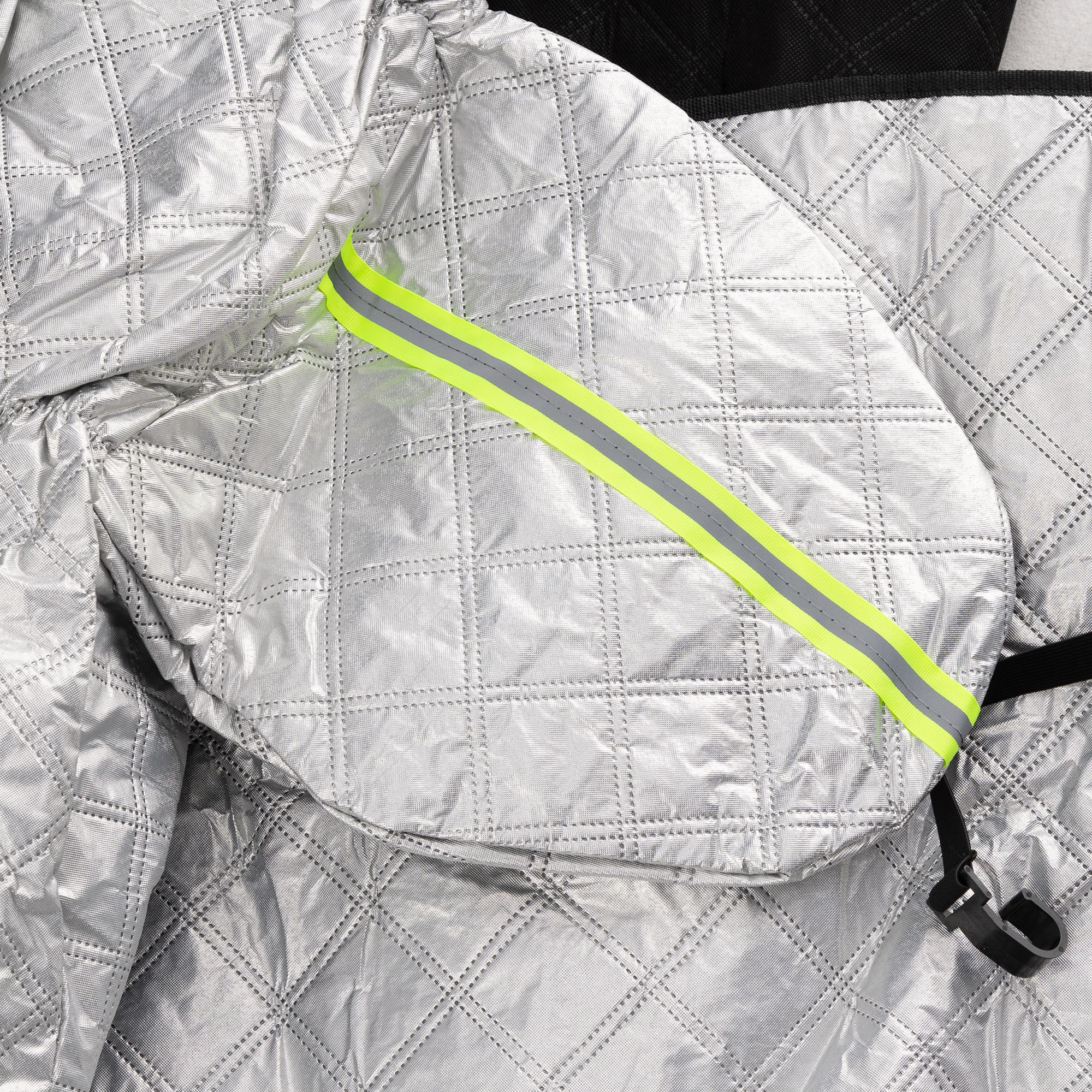 Ausgesprochen praktisch bei Extremwetter: Die PKW Premium Allwetter Scheibenabdeckung schützt im Winter vor Eis und Schnee, im Sommer vor Hitze im Fahrzeuginneren. Reflektorstreifen auf den Abdeckungen der Seitenspiegel erhöhen zusätzlich die Sichtbarkeit.