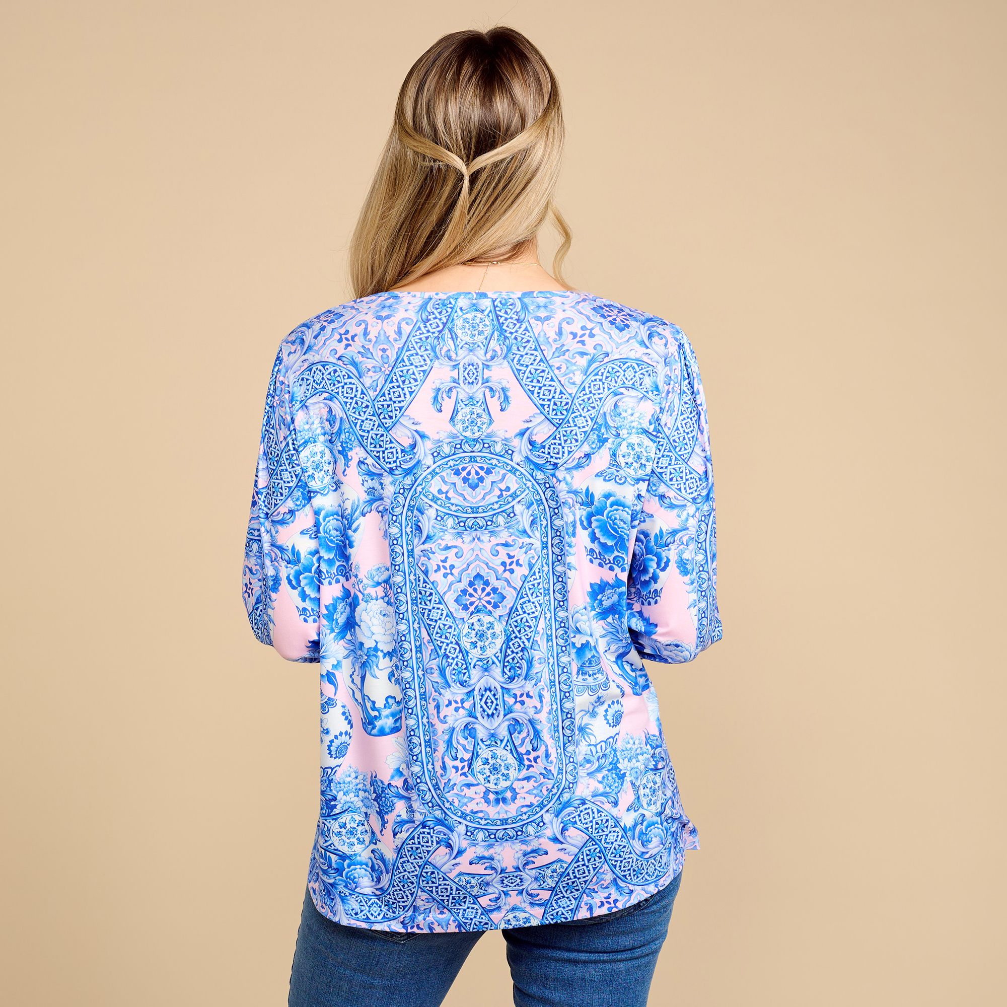 - Jedes Designermodell wird einzeln bedruckt, deshalb können sich Unregelmäßigkeiten oder weiße Kontrasteffekte an unterschiedlichen Stellen befinden. Dieses Merkmal ist charakteristisch für die hochwertigen Drucke. Verschiedene Motive werden handgemalt und danach als Druck dupliziert. Hiermit entsteht ein von der Designerin exklusiv entworfener Print, der mit ihrer Signatur versehen ist.