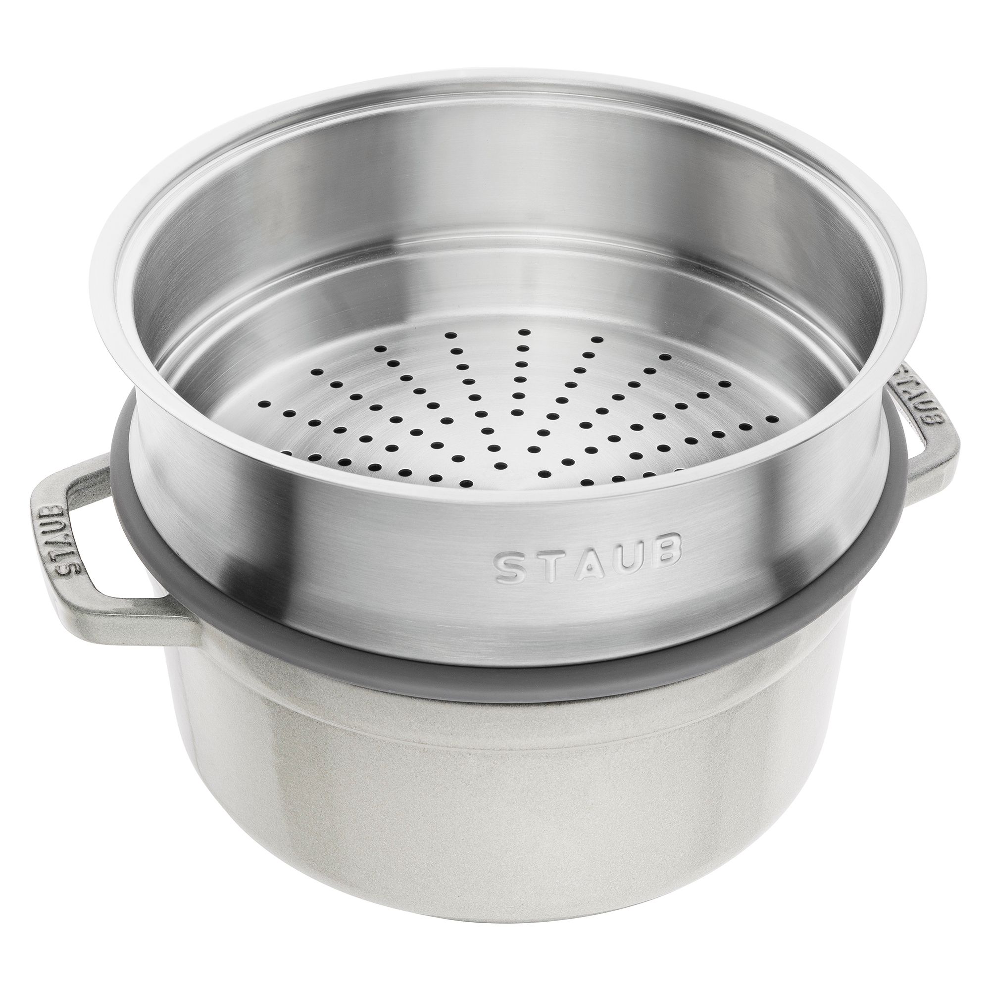 Genieße kulinarische Vielfalt mit STAUB®: Die La Cocotte mit Dämpfeinsatz vereint traditionelles Schmoren und sanftes Dünsten in einem hochwertigen Kochgeschirr – für saftige, zarte Ergebnisse und kreative Gerichte, die begeistern.