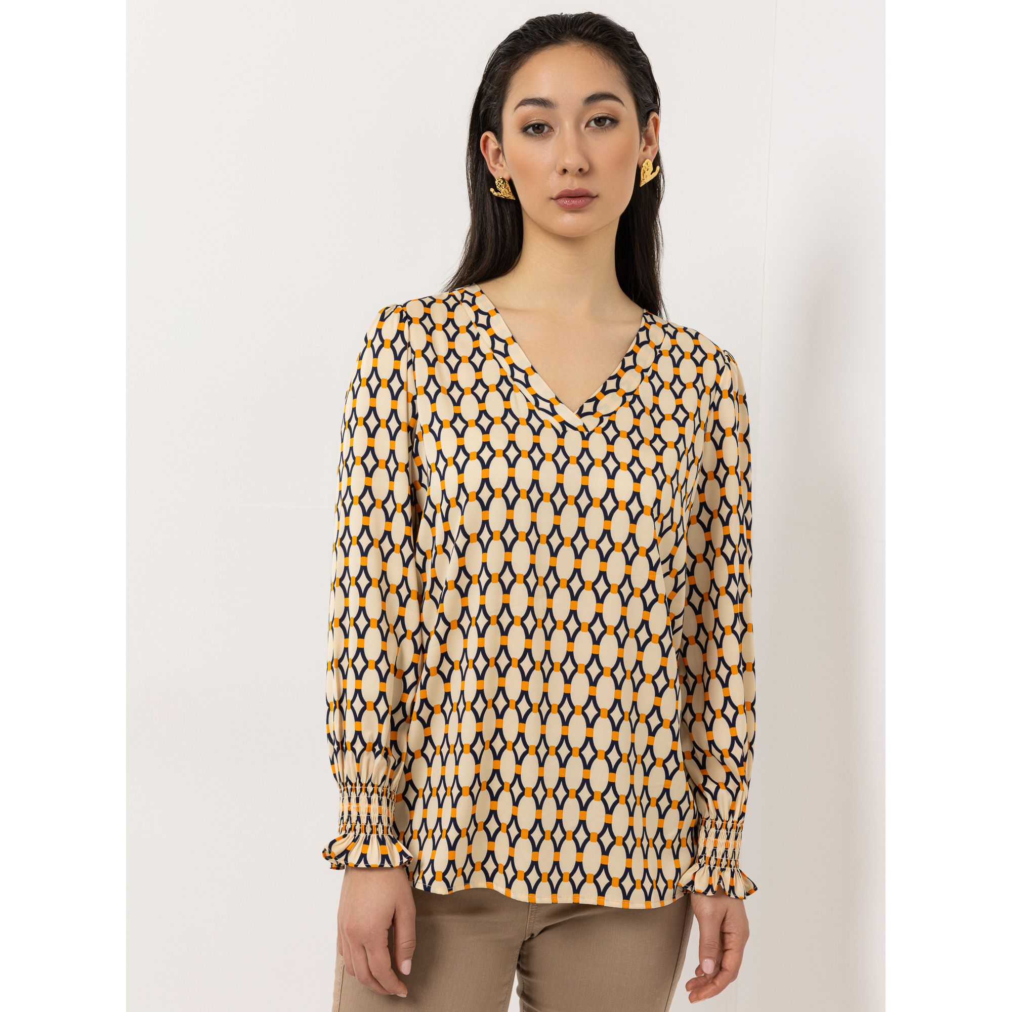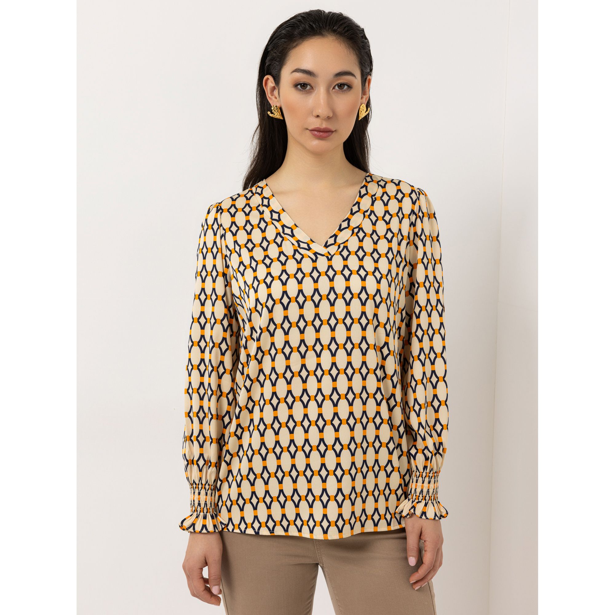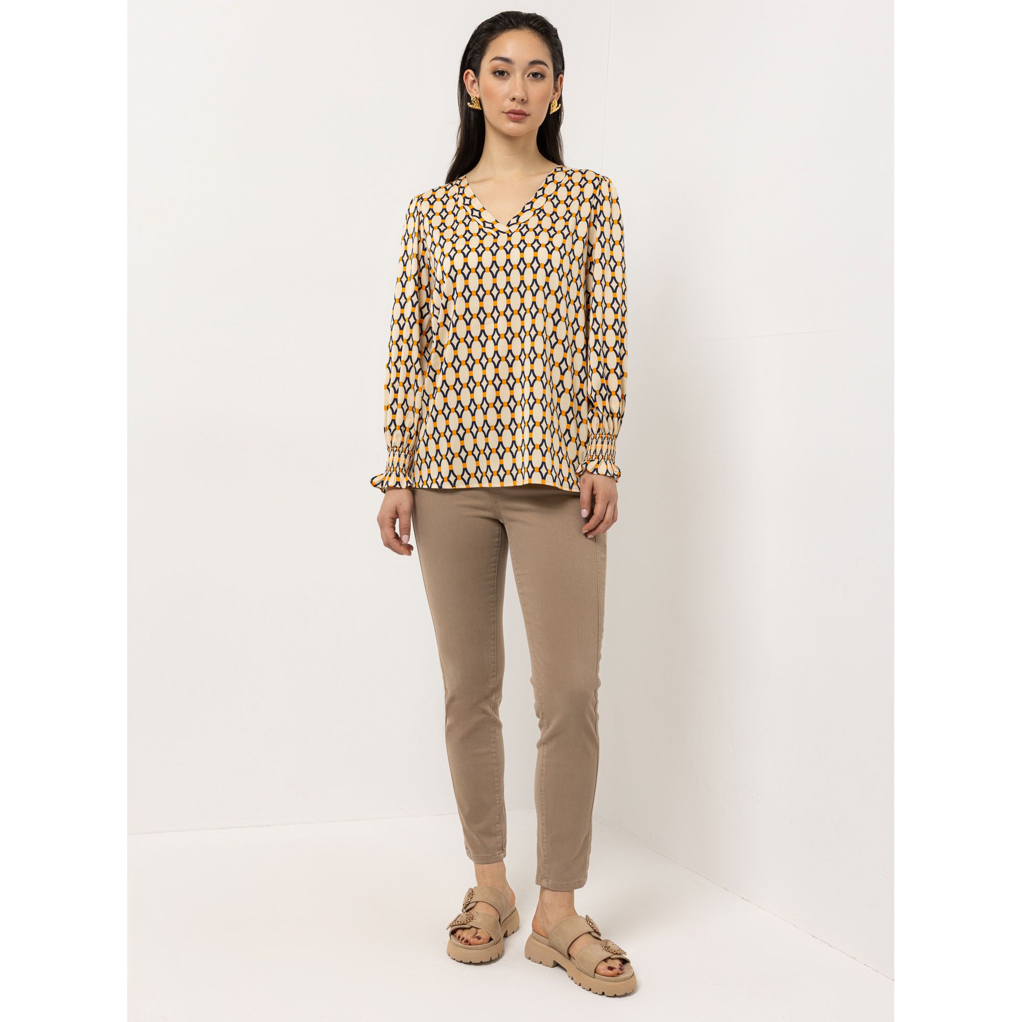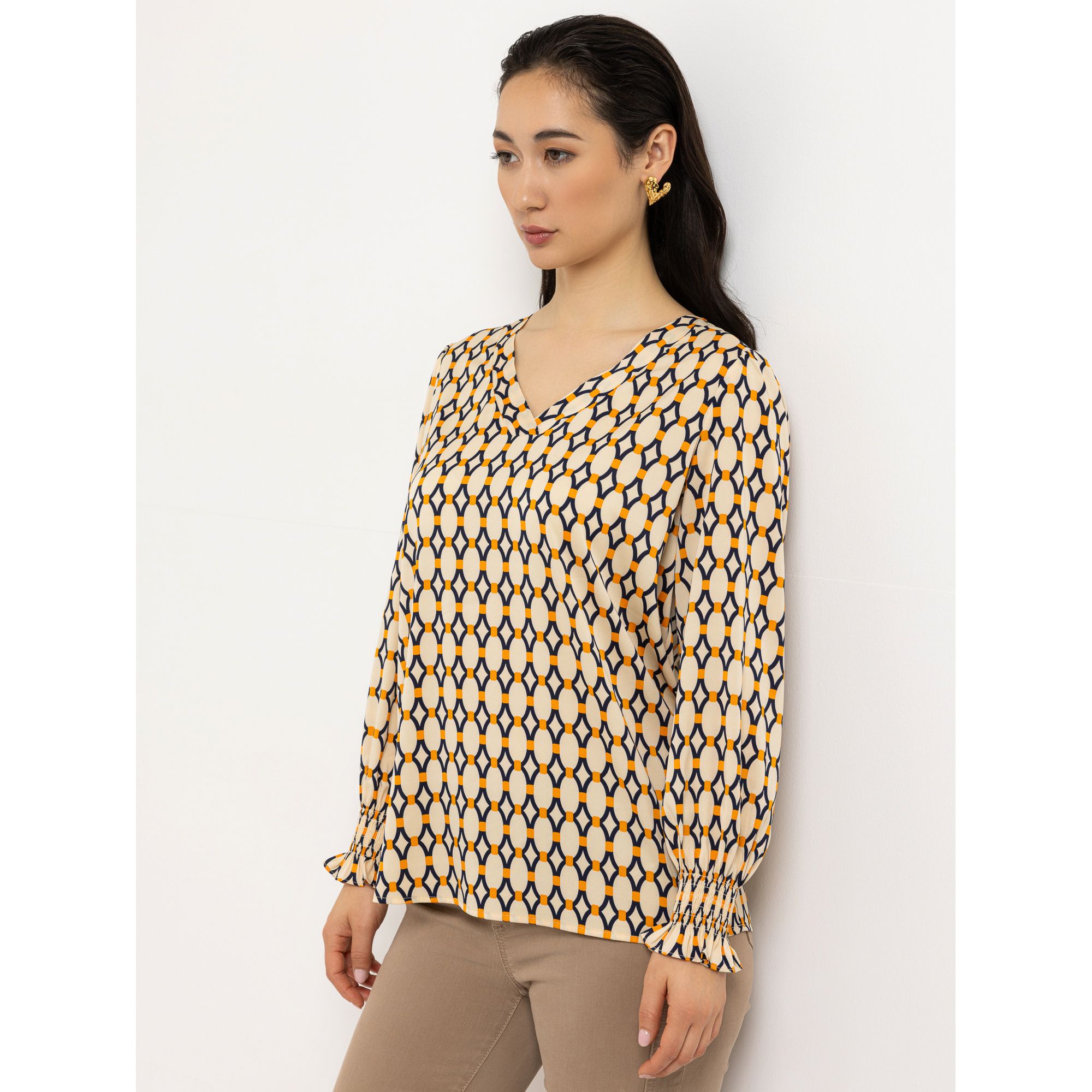 Der Volant-Abschluss am Ärmel verleiht der STEFFEN SCHRAUT Bluse eine weiche, verspielte Note.