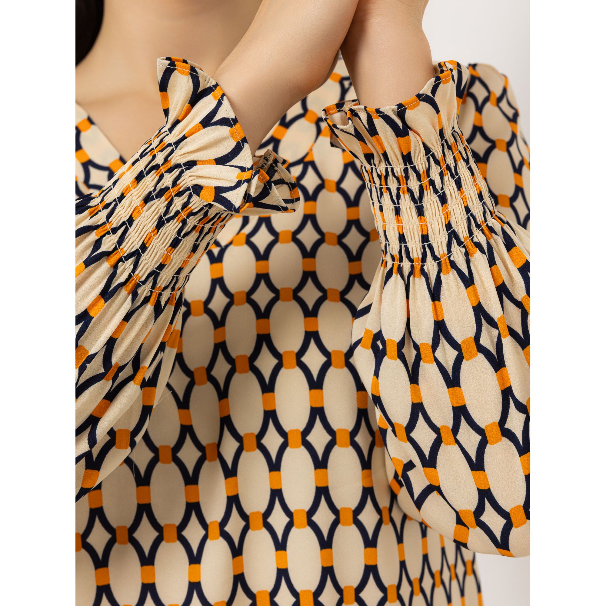 - Langarm mit gesmoktem Volant-Abschluss am Saum