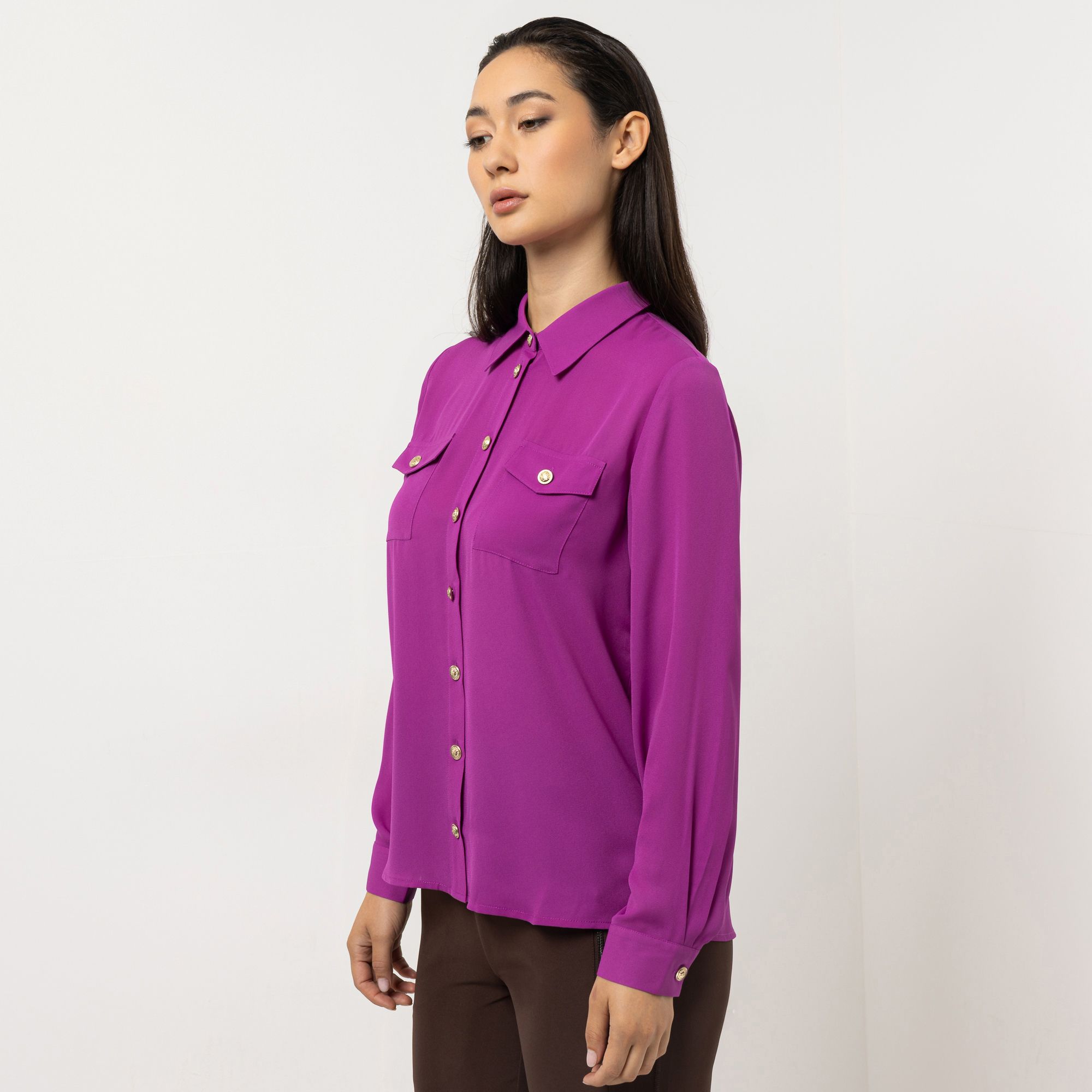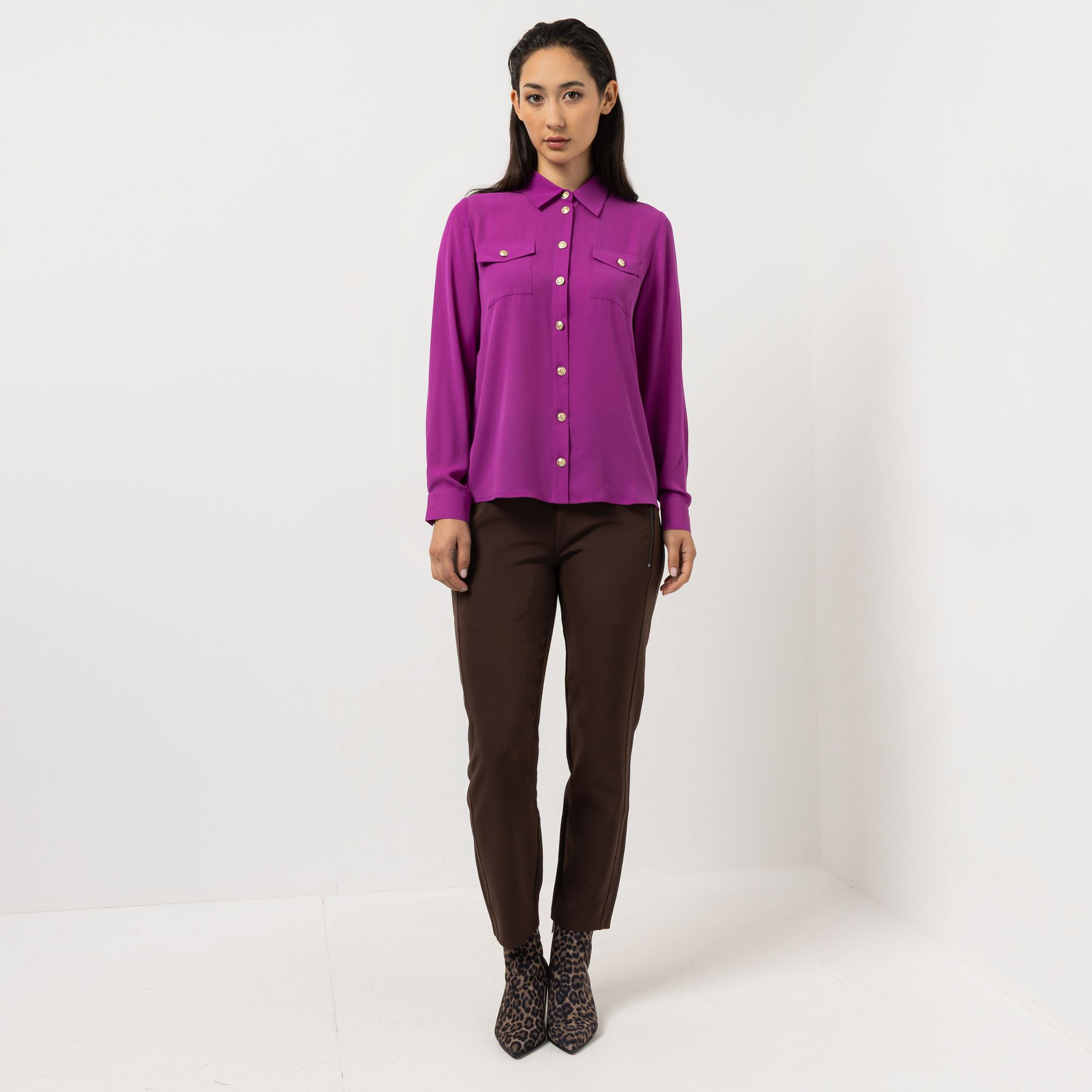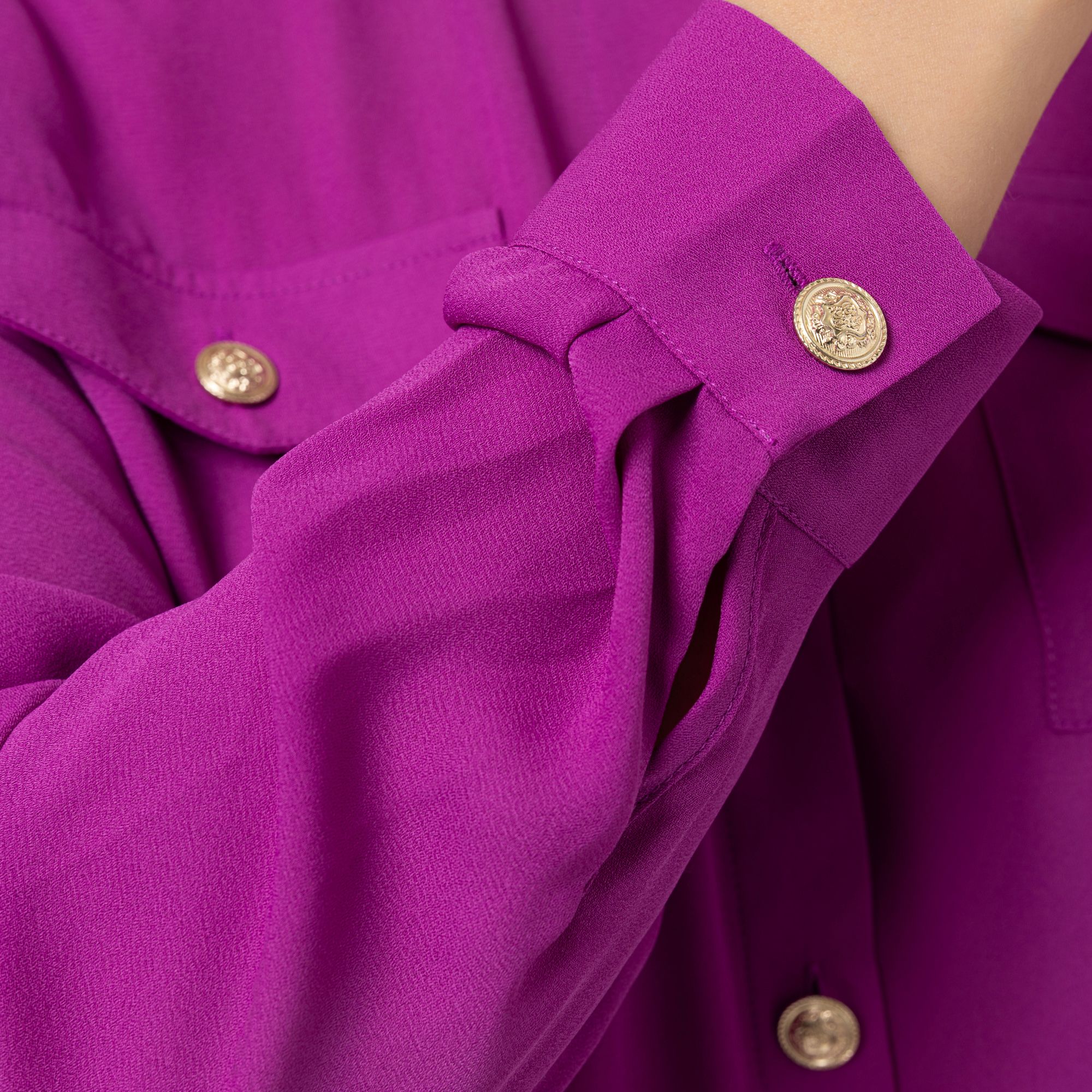 STEFFEN SCHRAUT setzt mit dieser Bluse neue Maßstäbe in Sachen Modebewusstsein und Eleganz. Das luxuriöse Design begeistert durch eine raffinierte Verbindung aus modernem Chiffon, glänzenden Schmuckknöpfen und charmanten Zierpattentaschen, die jedem Look ein edles Upgrade verleihen.