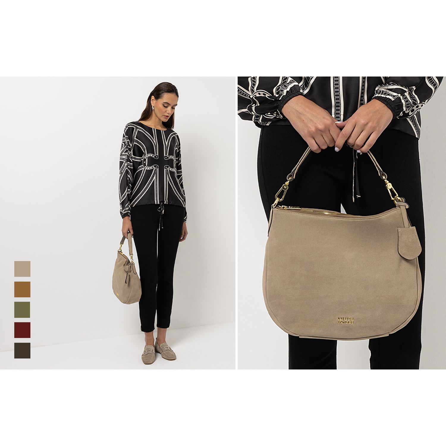 Luxus für unterwegs: Die edle Beuteltasche von STEFFEN SCHRAUT by Abro begeistert mit ihrem modernen Design und luxuriösen Details. Aus softem Veloursleder gefertigt, setzt sie ein elegantes Statement und begleitet dich mit urbaner Raffinesse durch verschiedenste Outfits.