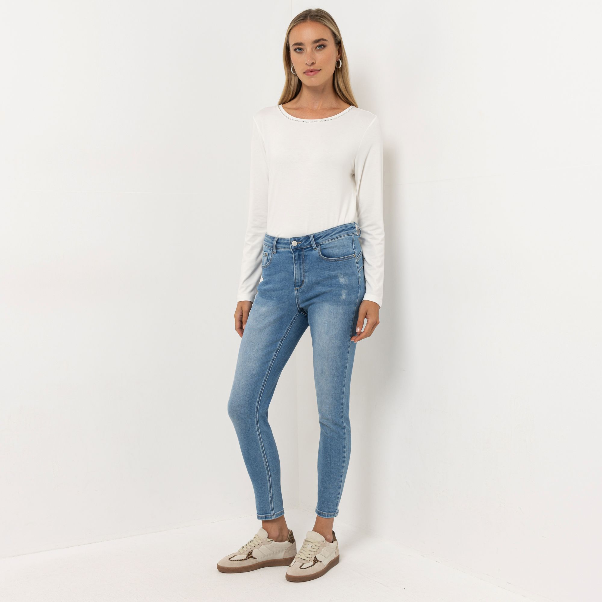STEFFEN SCHRAUT präsentiert dir eine knöchellange Jeans im 5-Pocket-Style mit markanten Used-Details und super schmalem Schnitt.