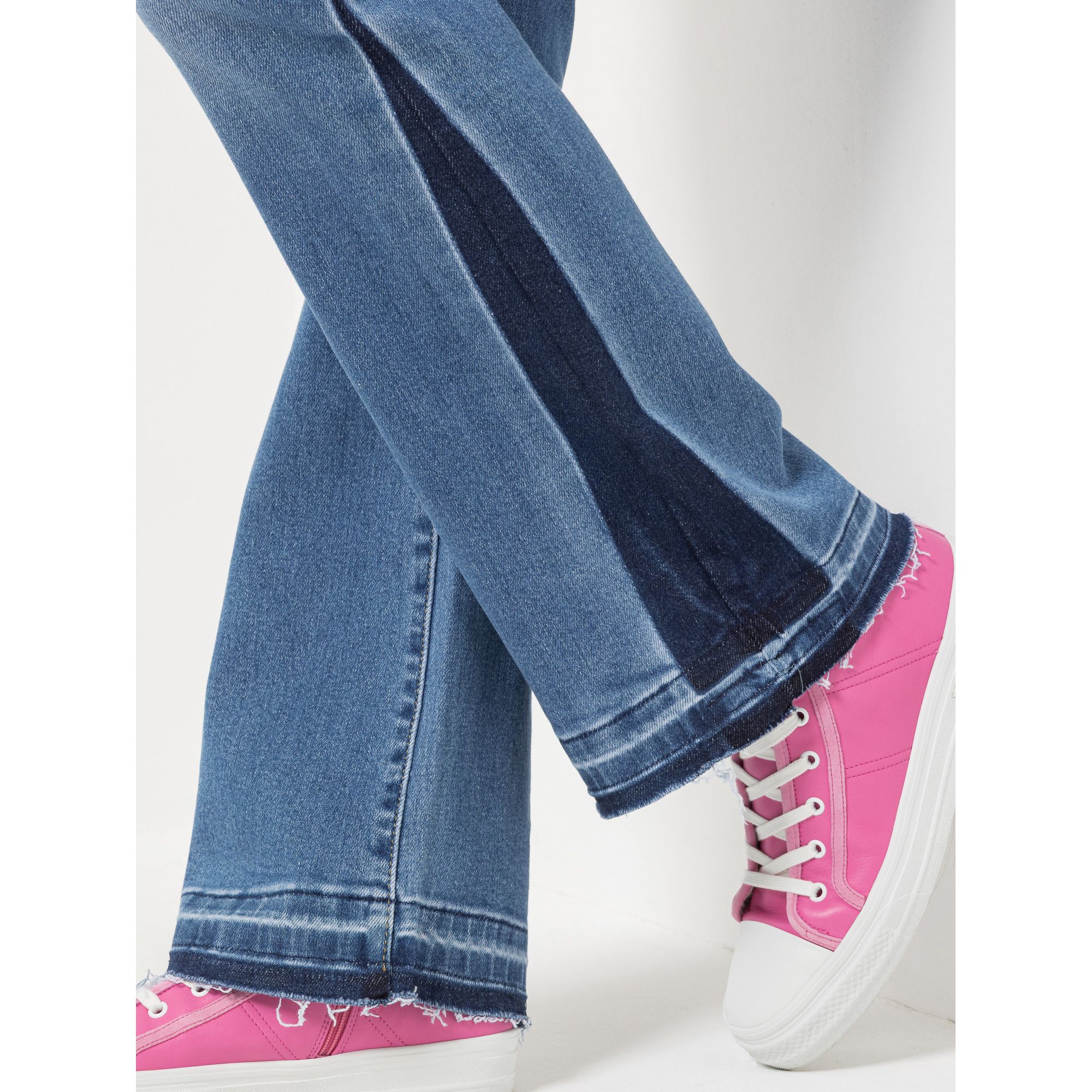 - dunkelblauer Beinverlauf am Saum