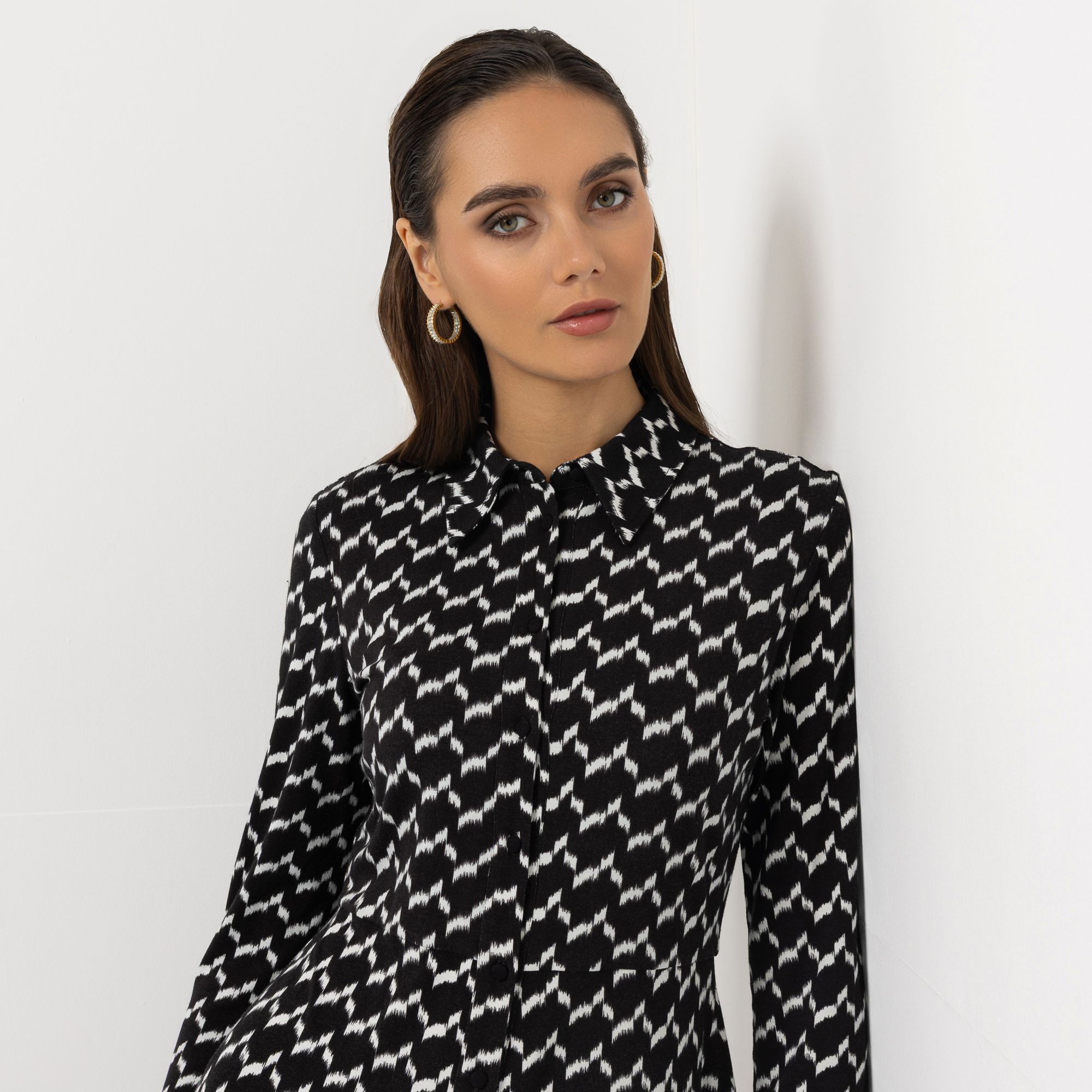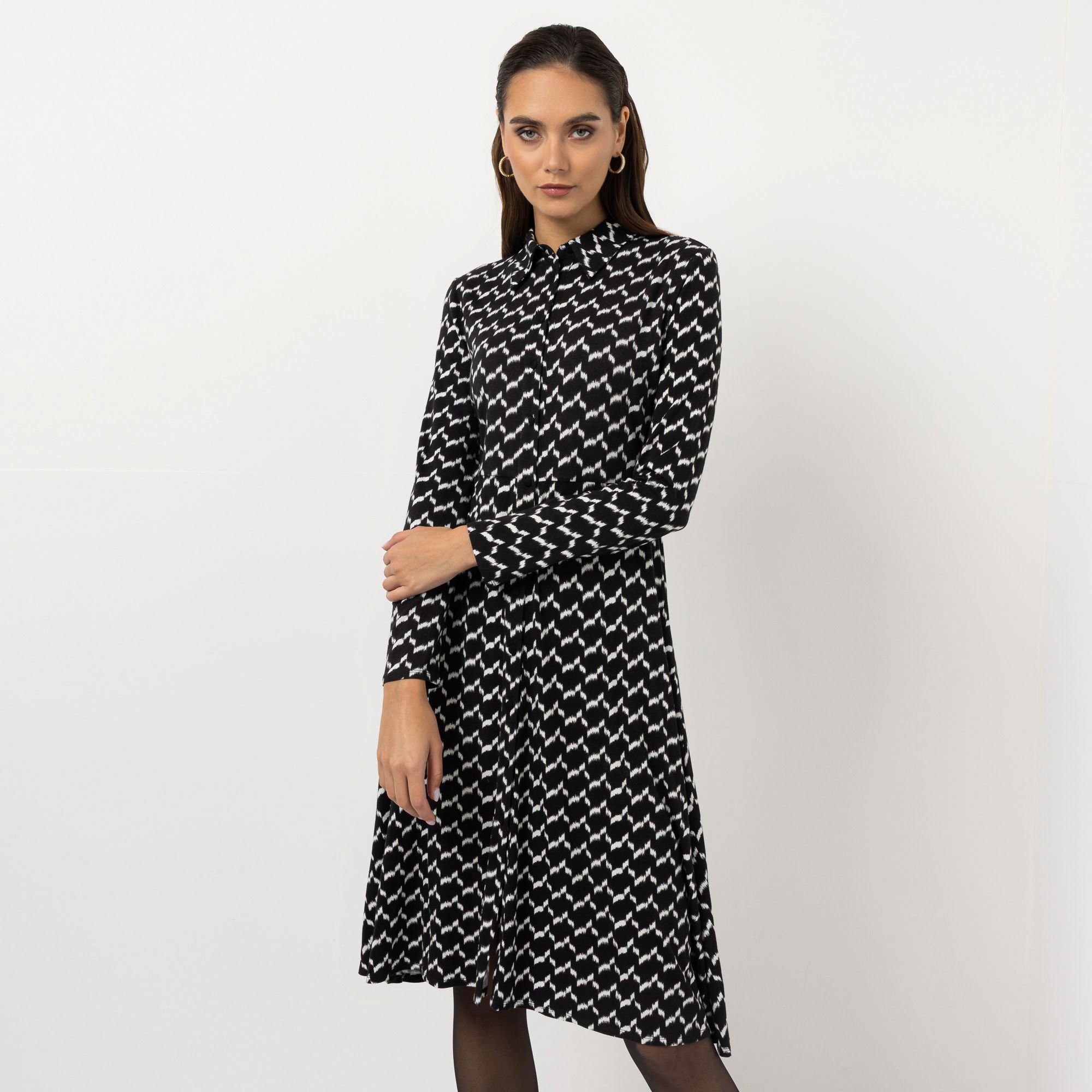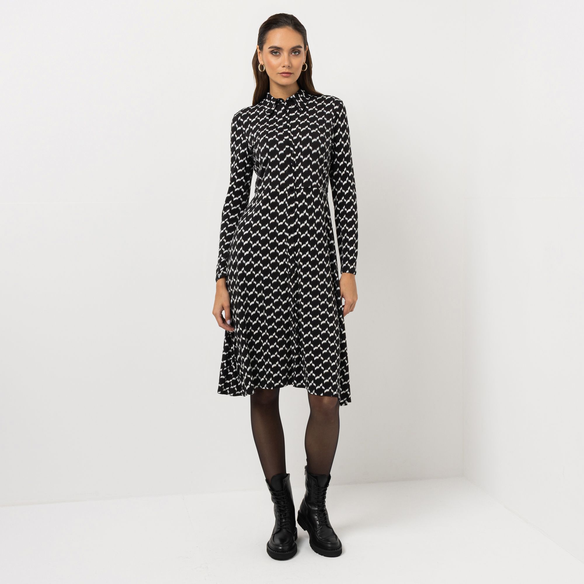 Designer-Kleid mit Allover-Druck und ausgestelltem Rockteil von STEFFEN SCHRAUT