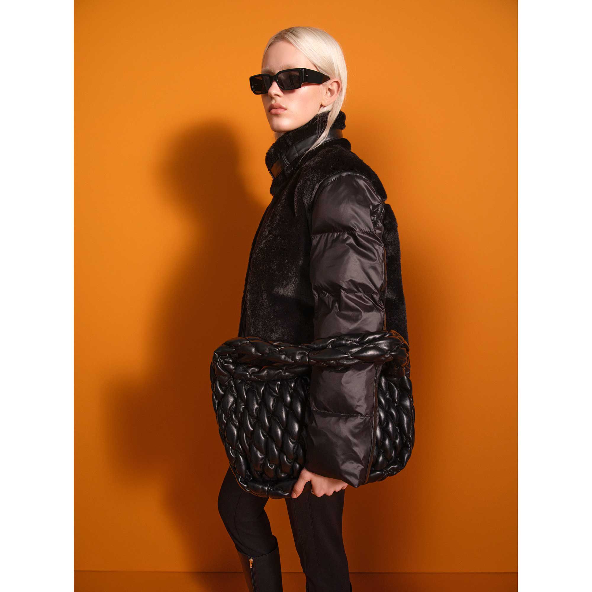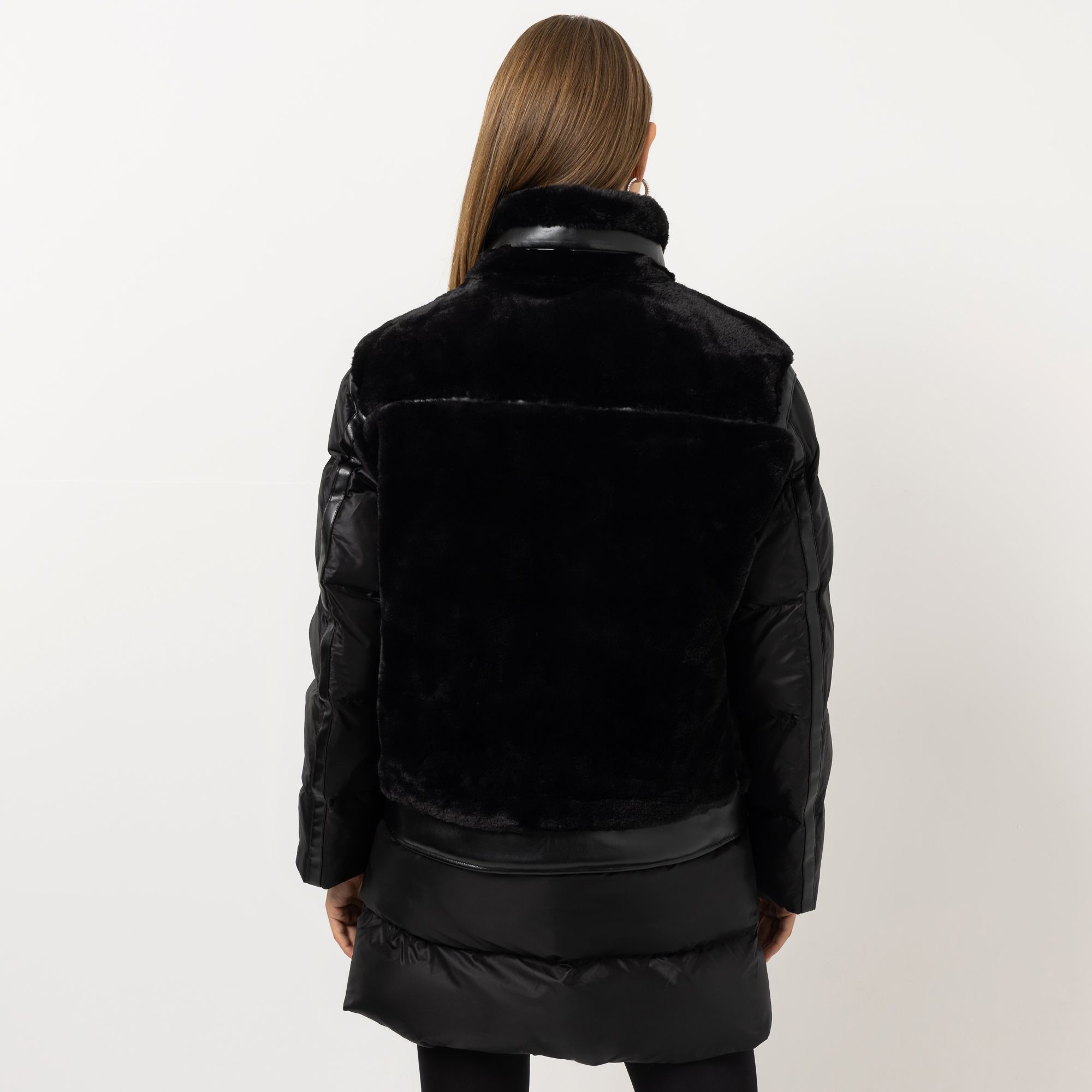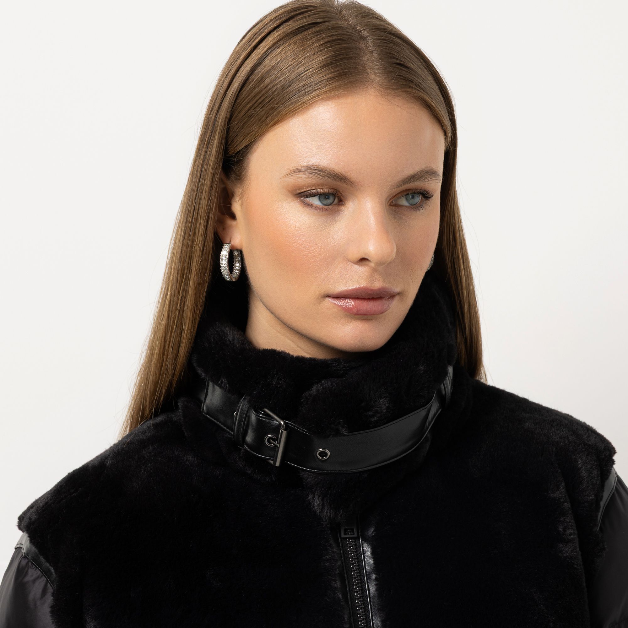 - 2-Wege-Reißverschluss in der vorderen Mitte der Webpelzjacke