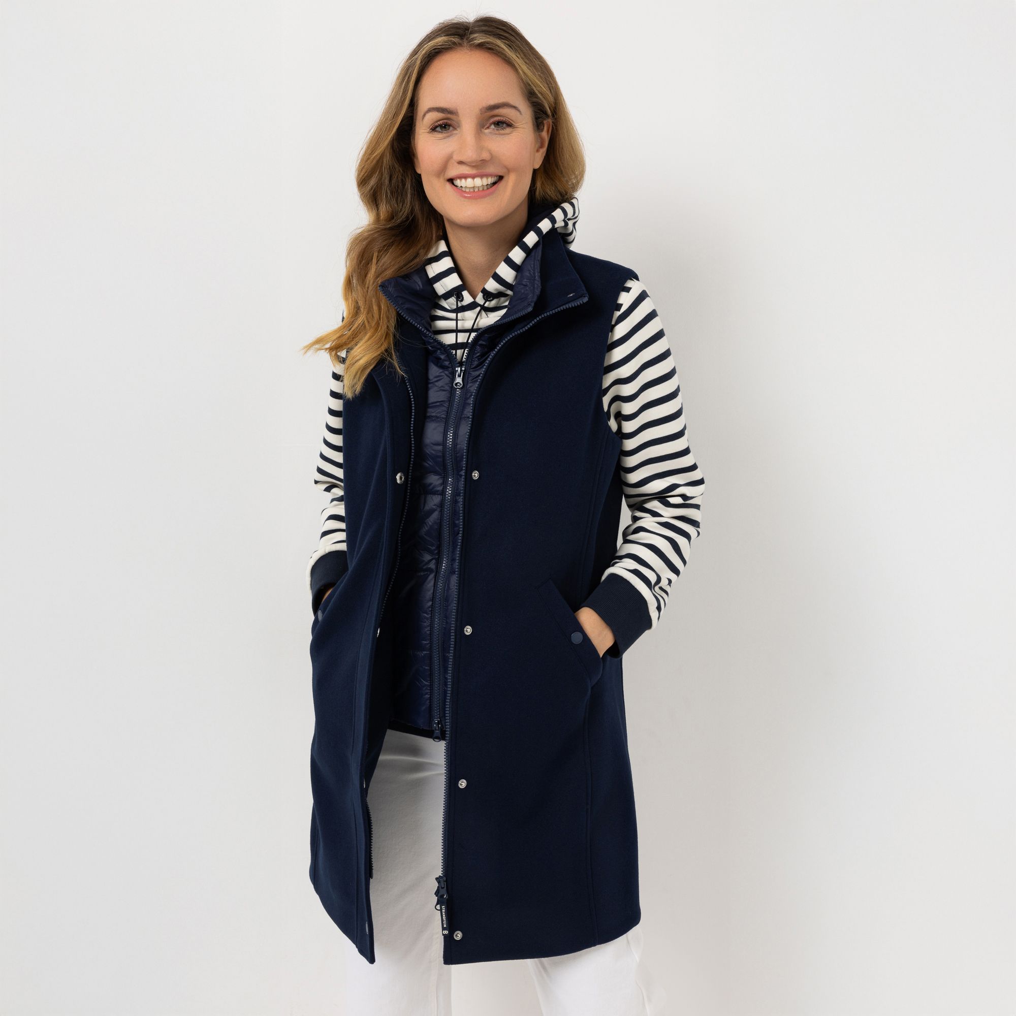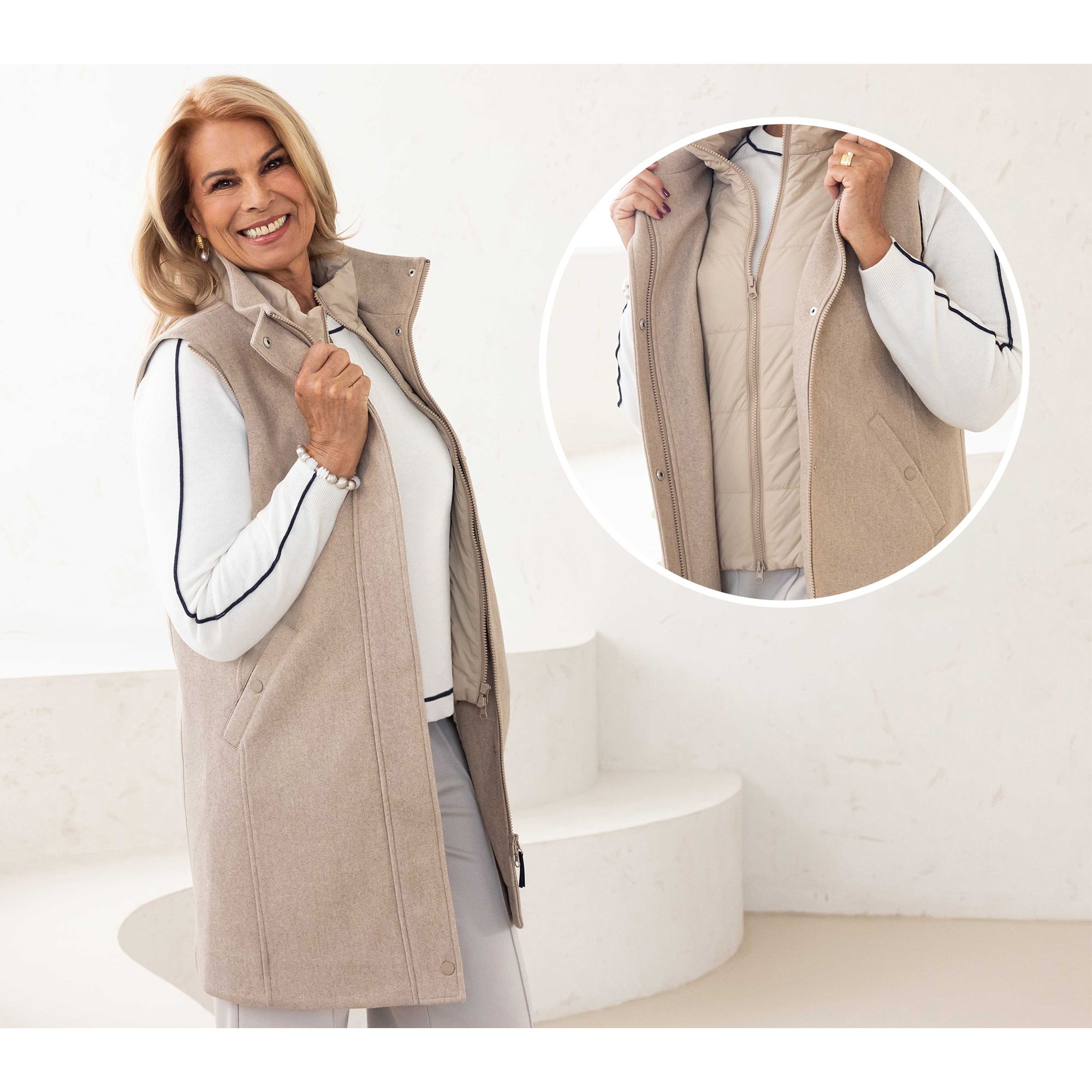 Die raffinierte 2in1-Optik sorgt nicht nur für Abwechslung, sondern bietet flexible Kombinationsmöglichkeiten. Von der entspannten Cityrunde bis zum lockeren Freizeitlook – diese Longweste wechselt mit dir mühelos den Stil und bleibt dabei immer modern und einzigartig.