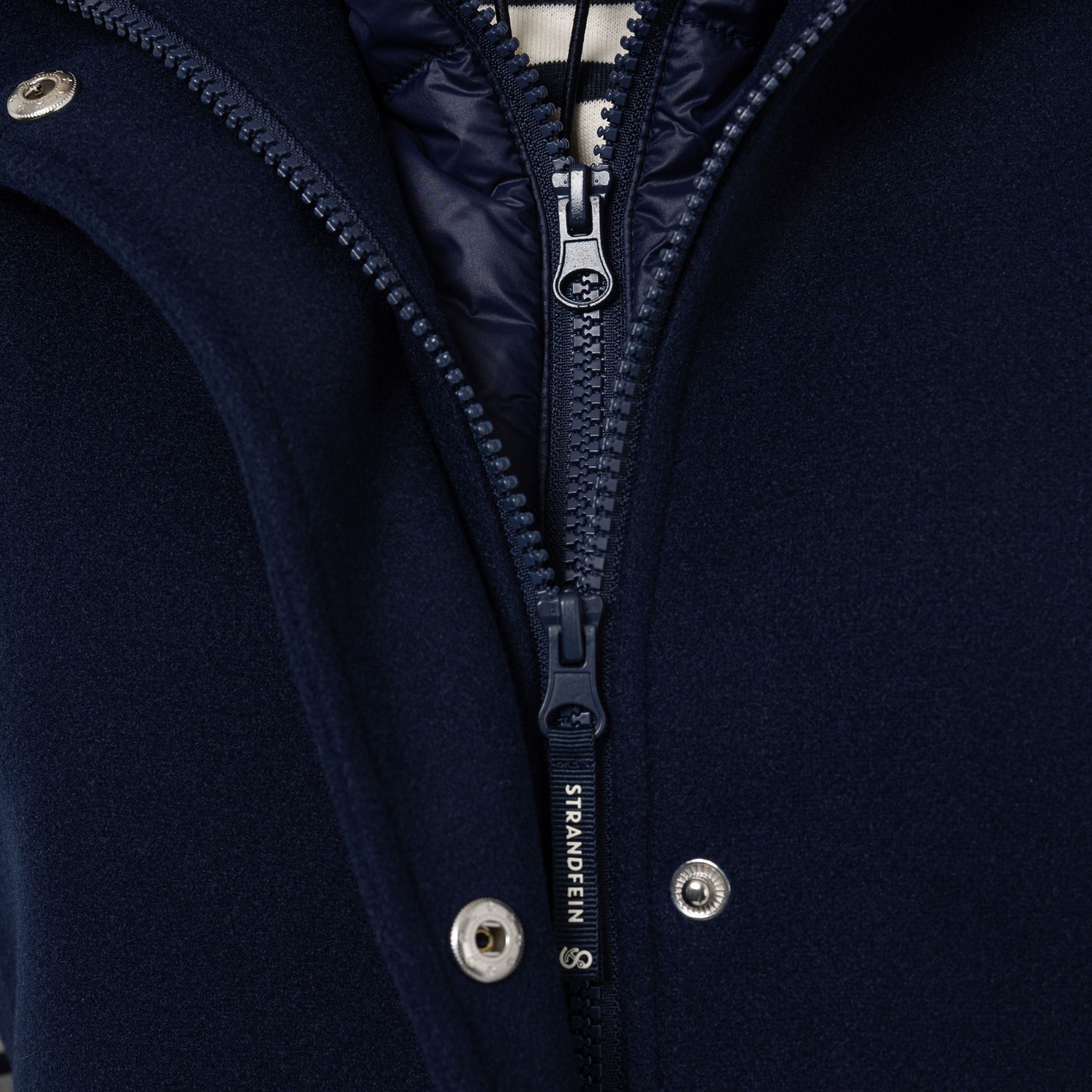 - außen gebrandeter 2-Wege-Reißverschluss und verdeckte Knopfleiste in der vorderen Mitte