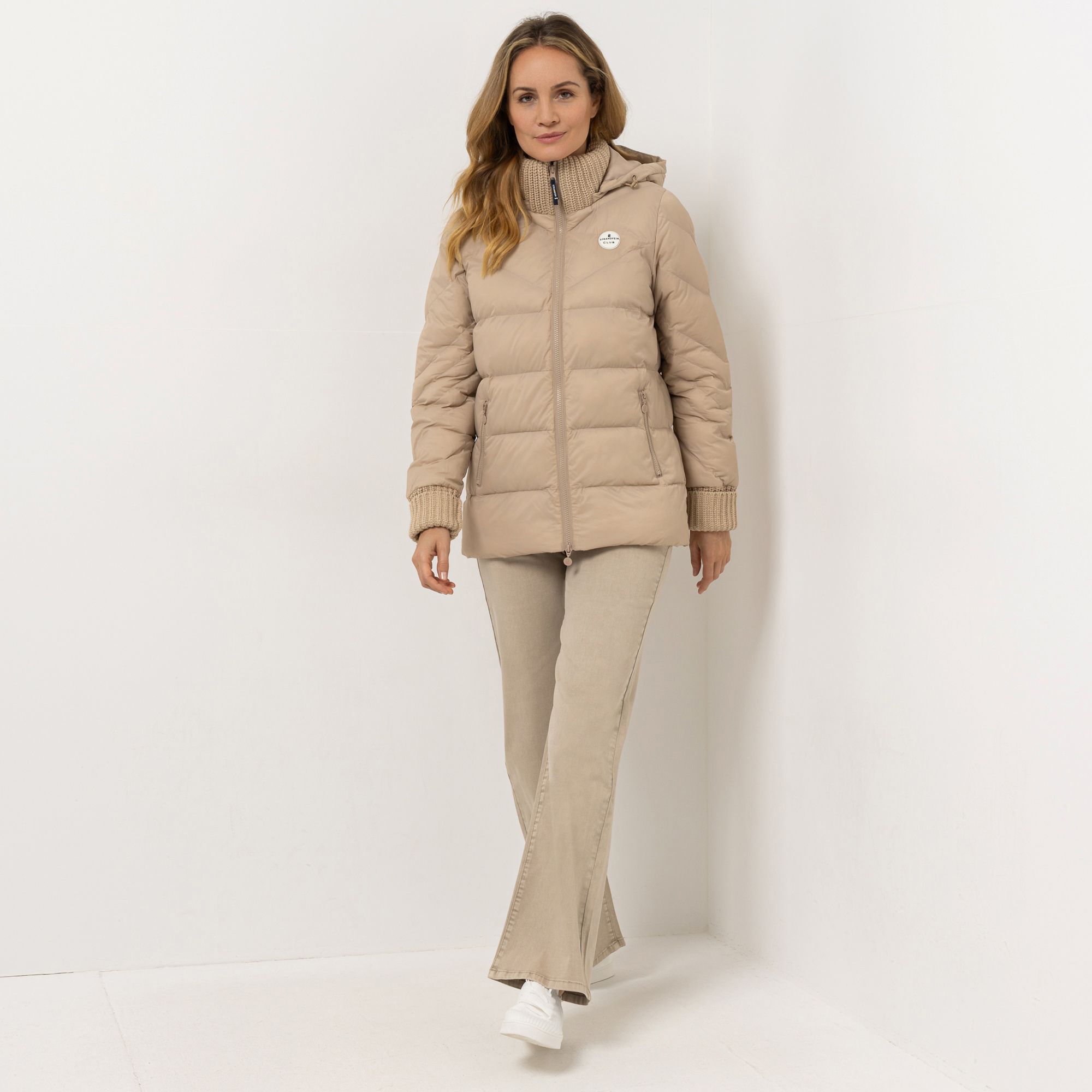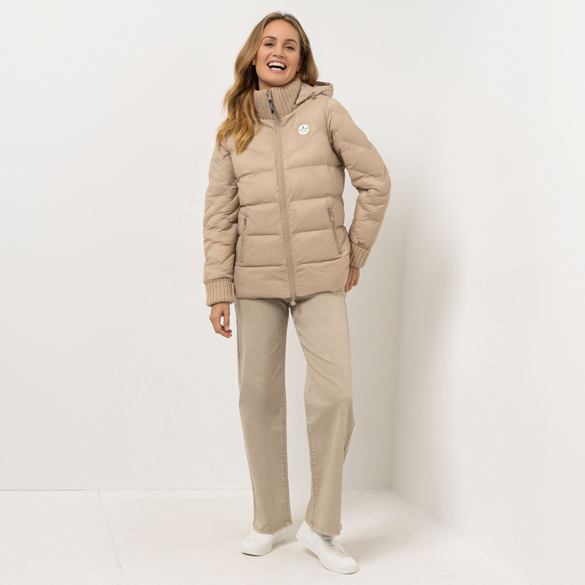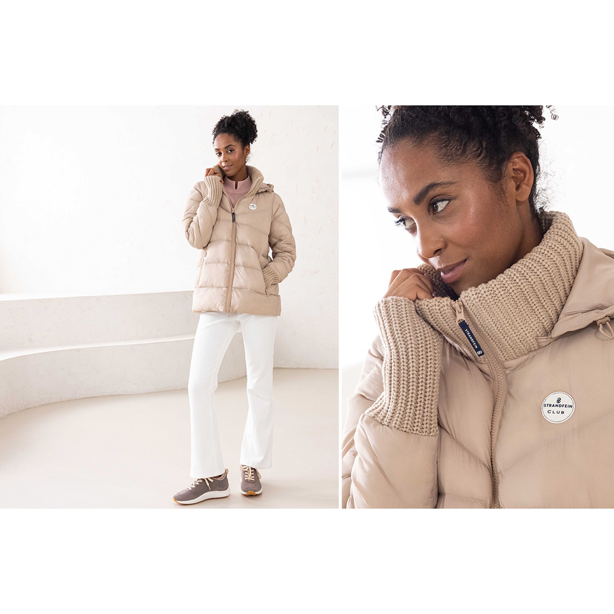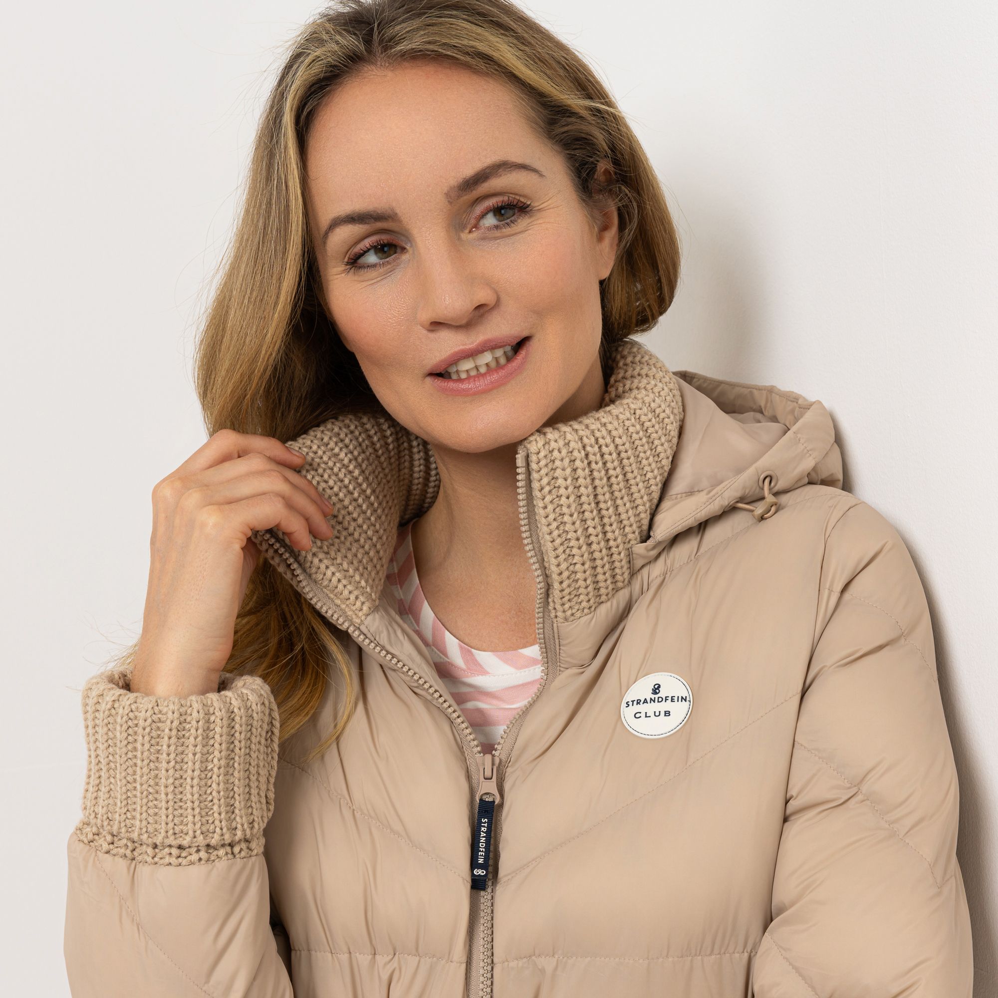 Stylische Leichtigkeit, die durch Komfort begeistert: Die Steppjacke von STRANDFEIN präsentiert sich als trendige Begleitung mit lässigem Chic. Innovative, breite Strickabschlüsse an Ärmel- und Kragenpartie unterstreichen den sportiven Charakter und erlauben es dir, das Design im Handumdrehen durch Umschlagen individuell zu stylen.