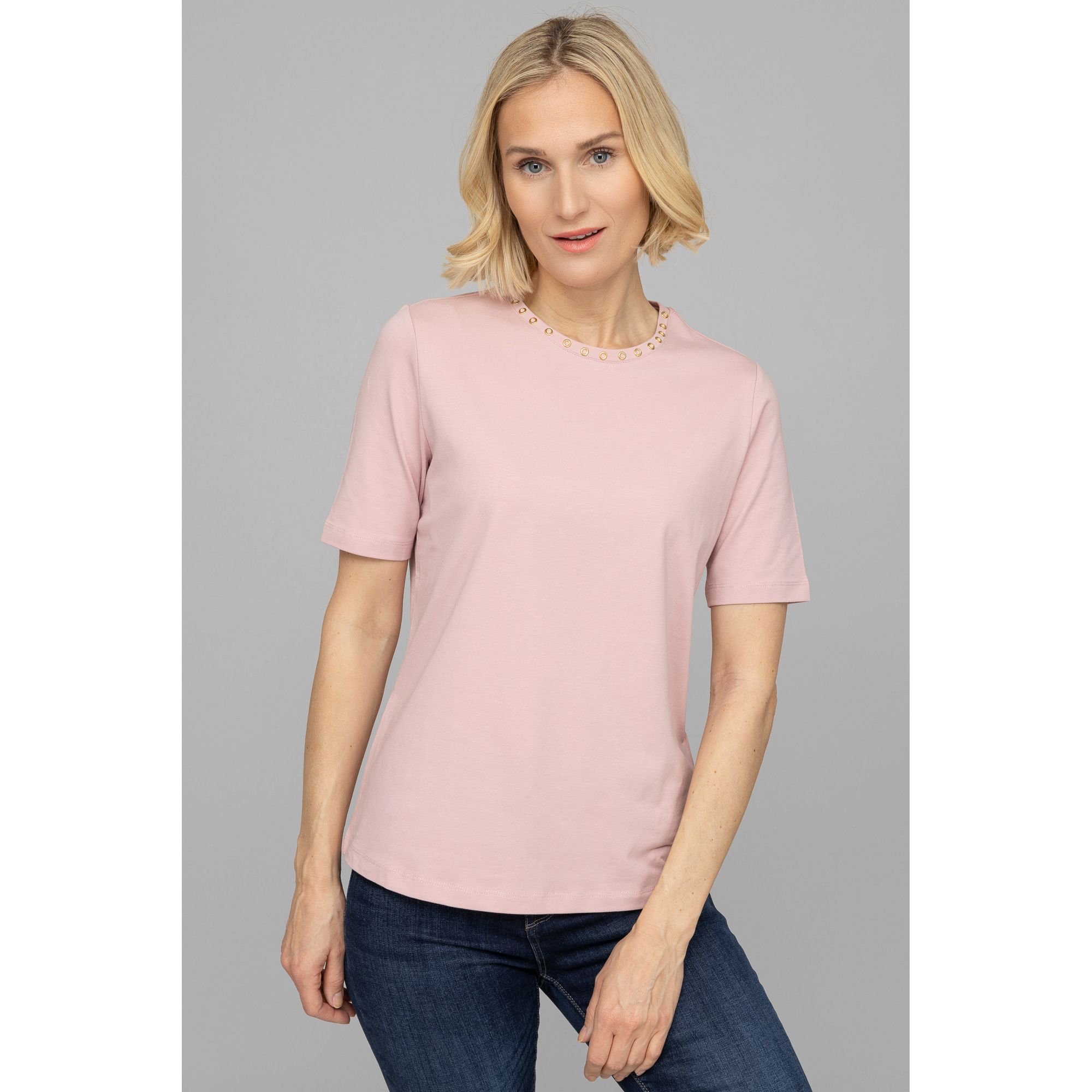 Dezenter Chic: VIA MILANO Jersey-Shirt mit Nieten am Ausschnitt.