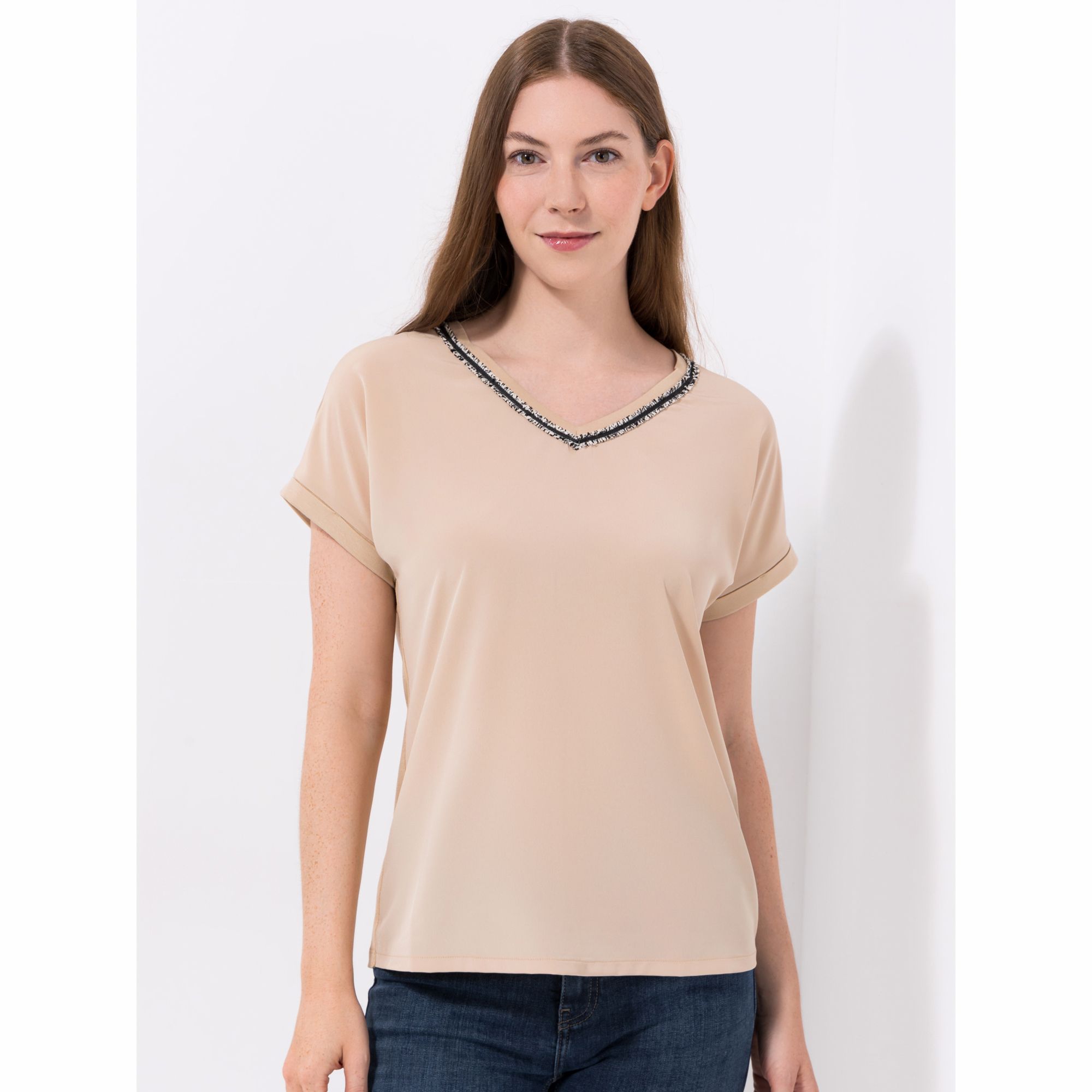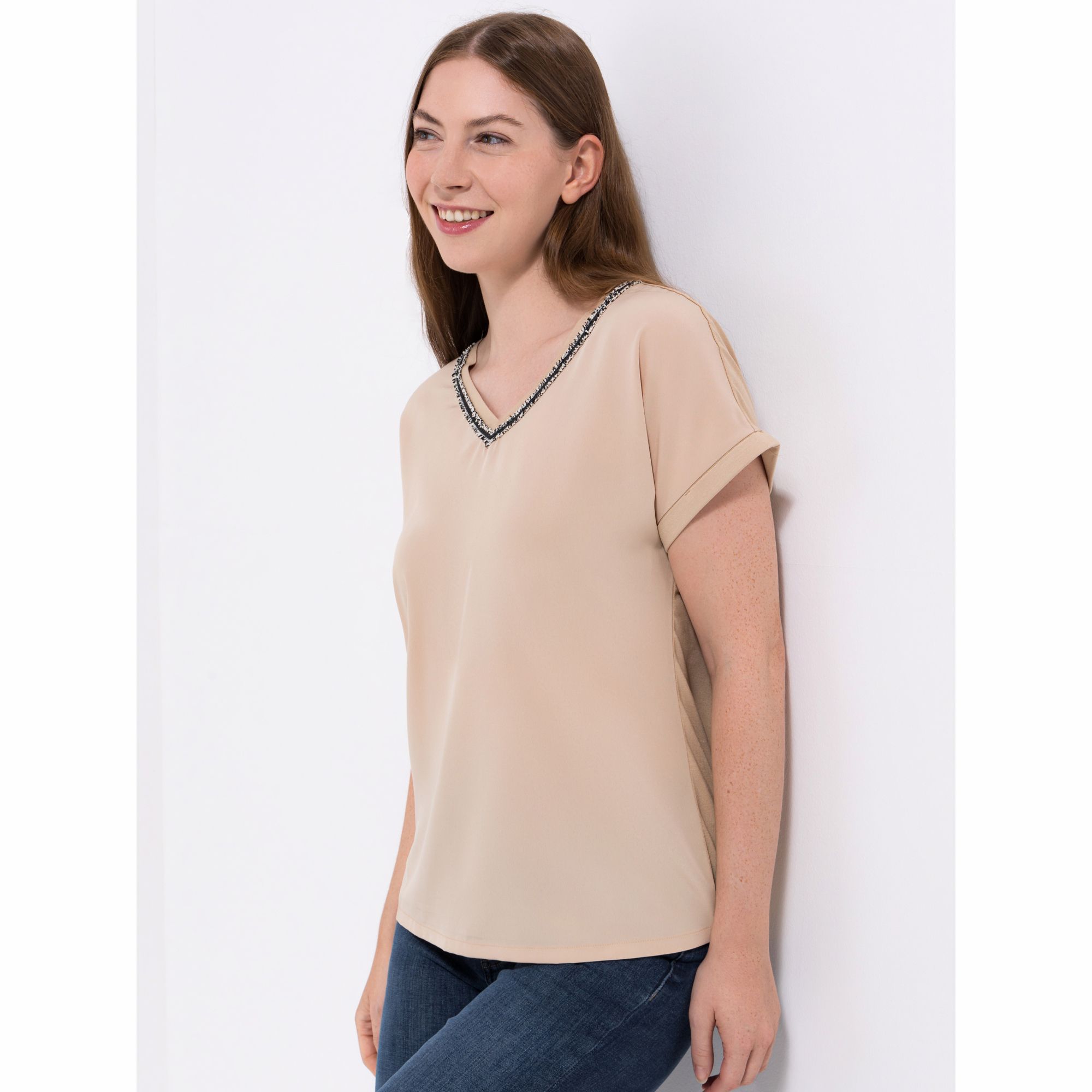 Das VIA MILANO Shirt bringt mit seinem Kontrastdetail und dem figurumspielenden Schnitt frischen Wind in deine Garderobe.