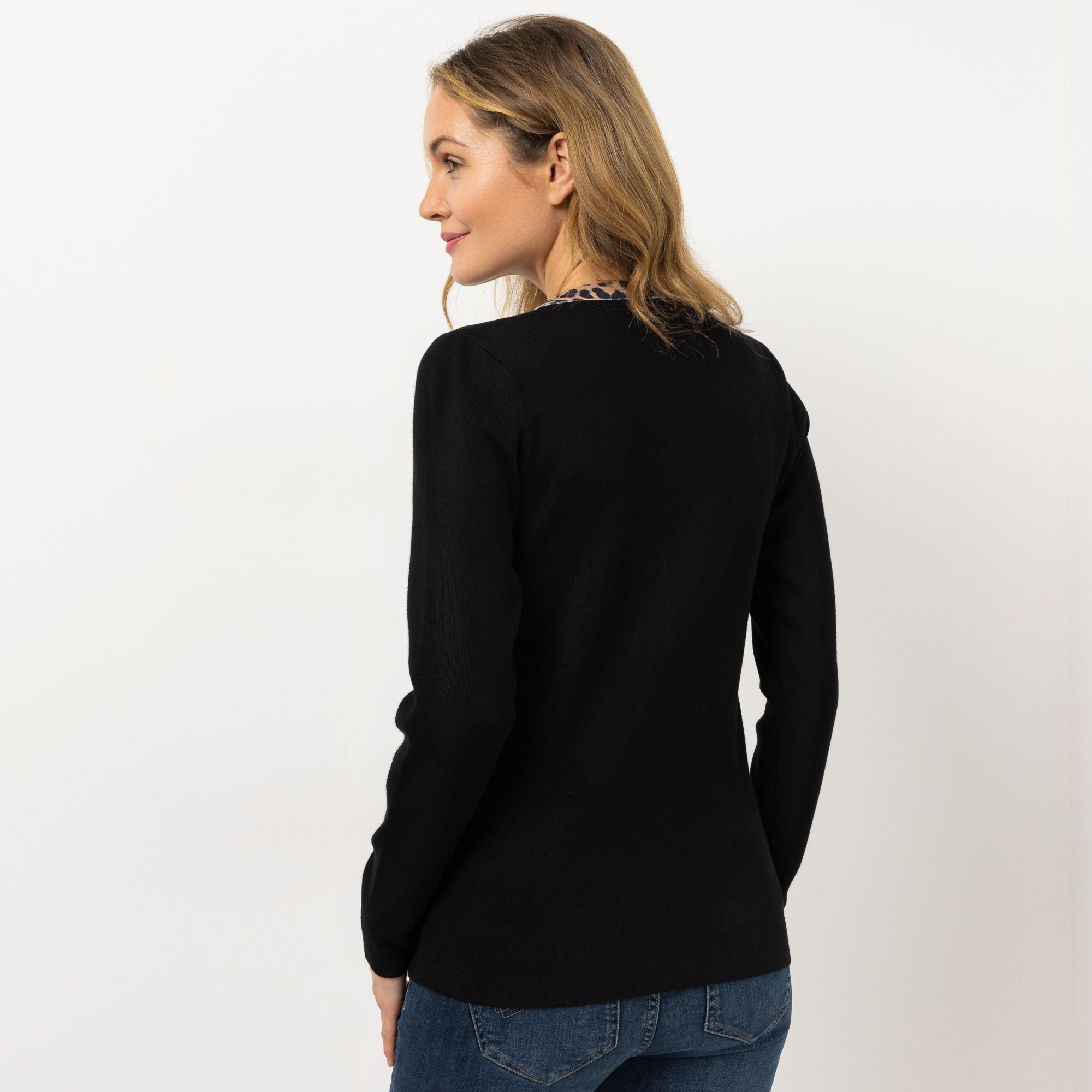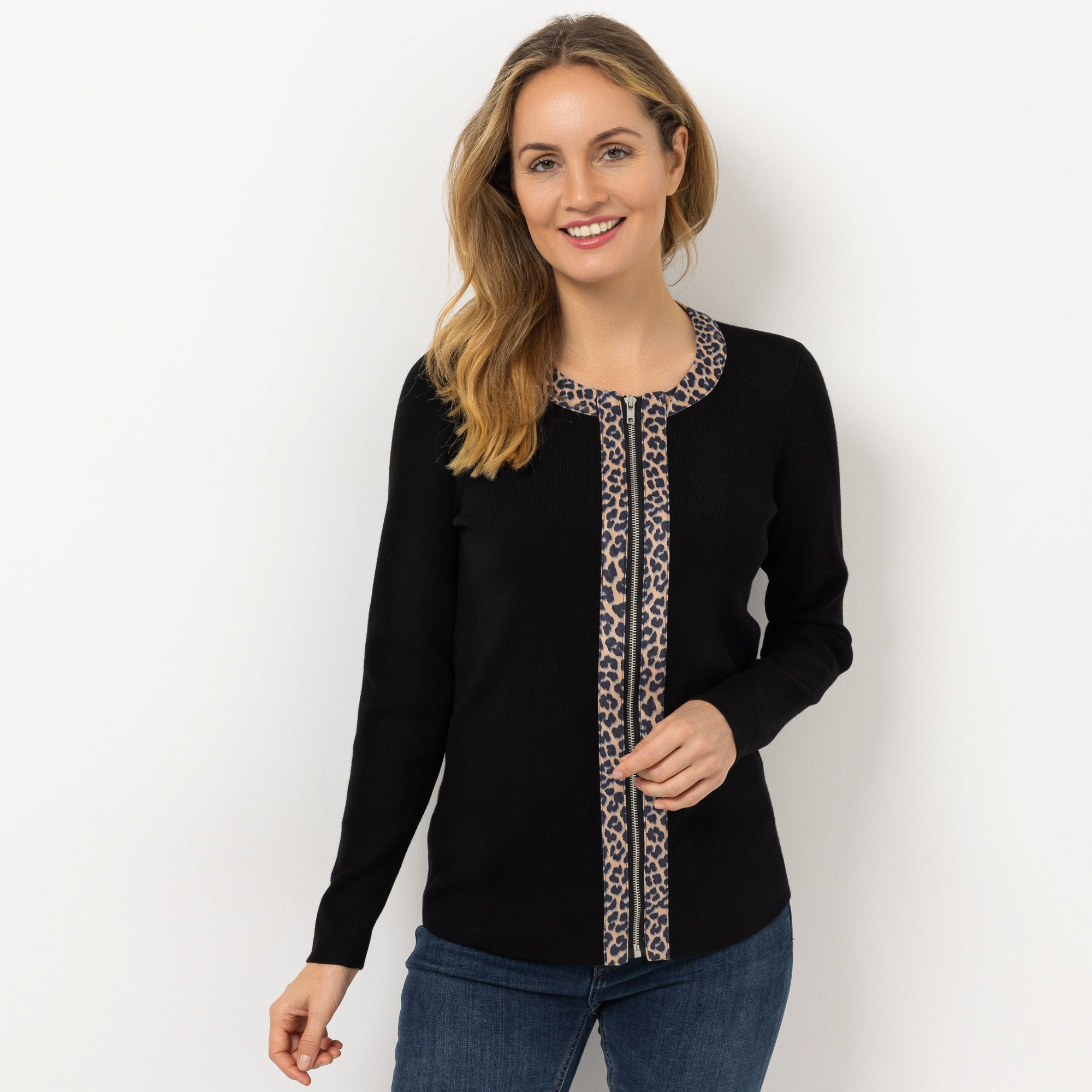 Ein Design, das nicht aus der Mode kommt: VIA MILANO Strickjacke mit Leo-Details.