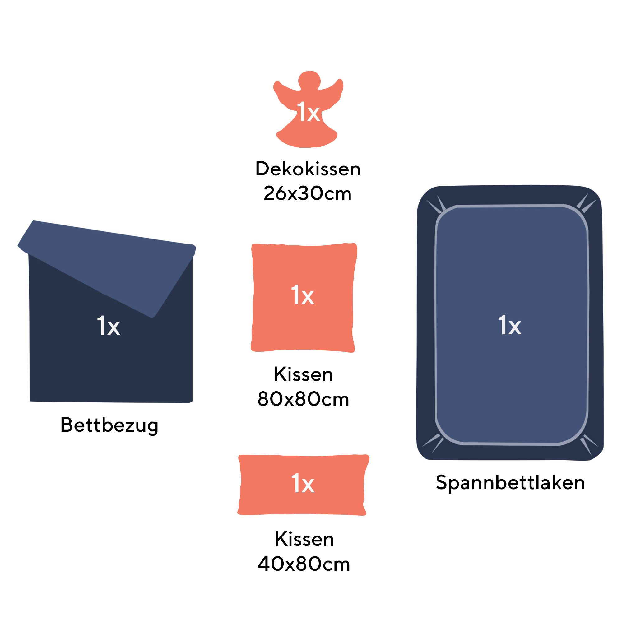 Wendebettwäsche mit Spannbettlaken und Engelkissen