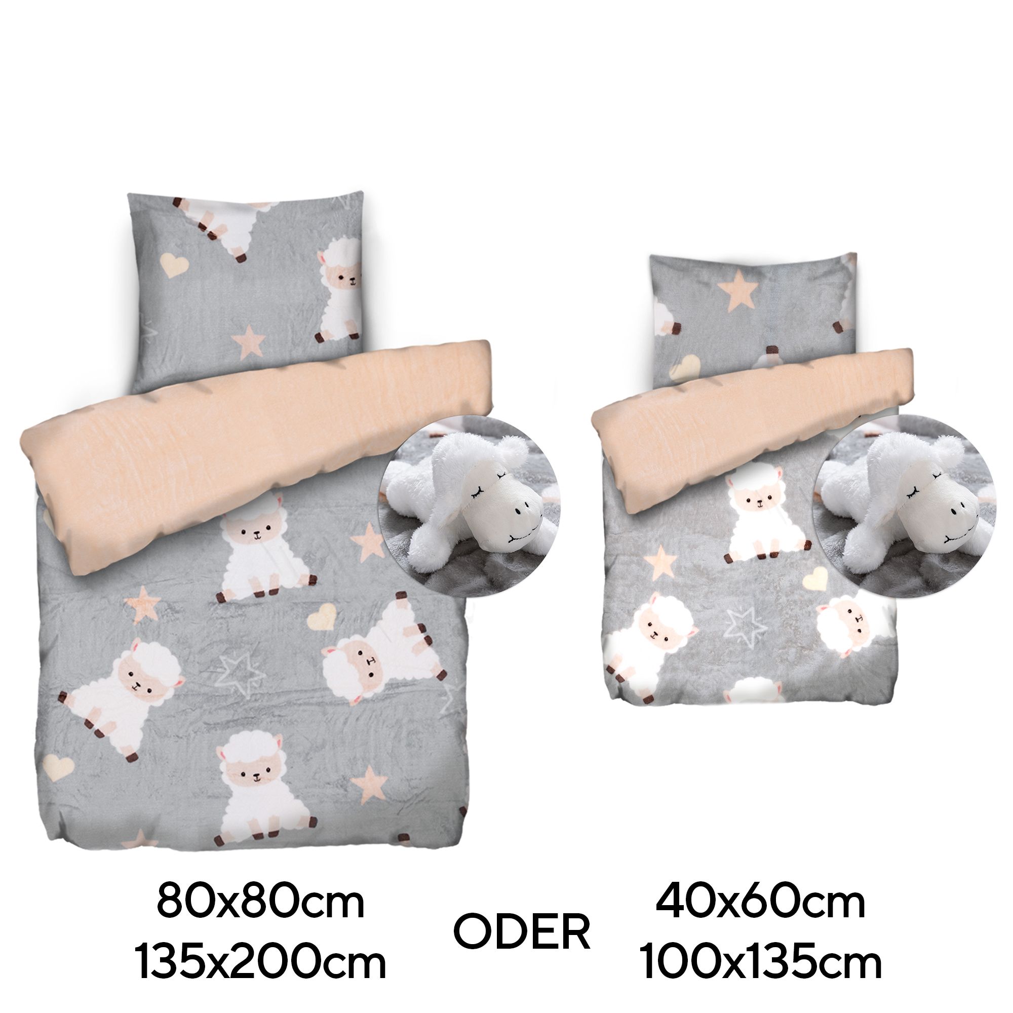 Kinderbettwäsche mit Schäfchen Kuscheltier