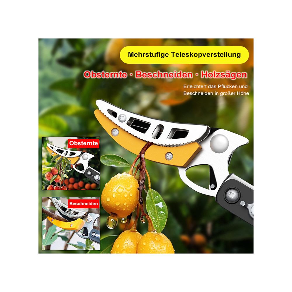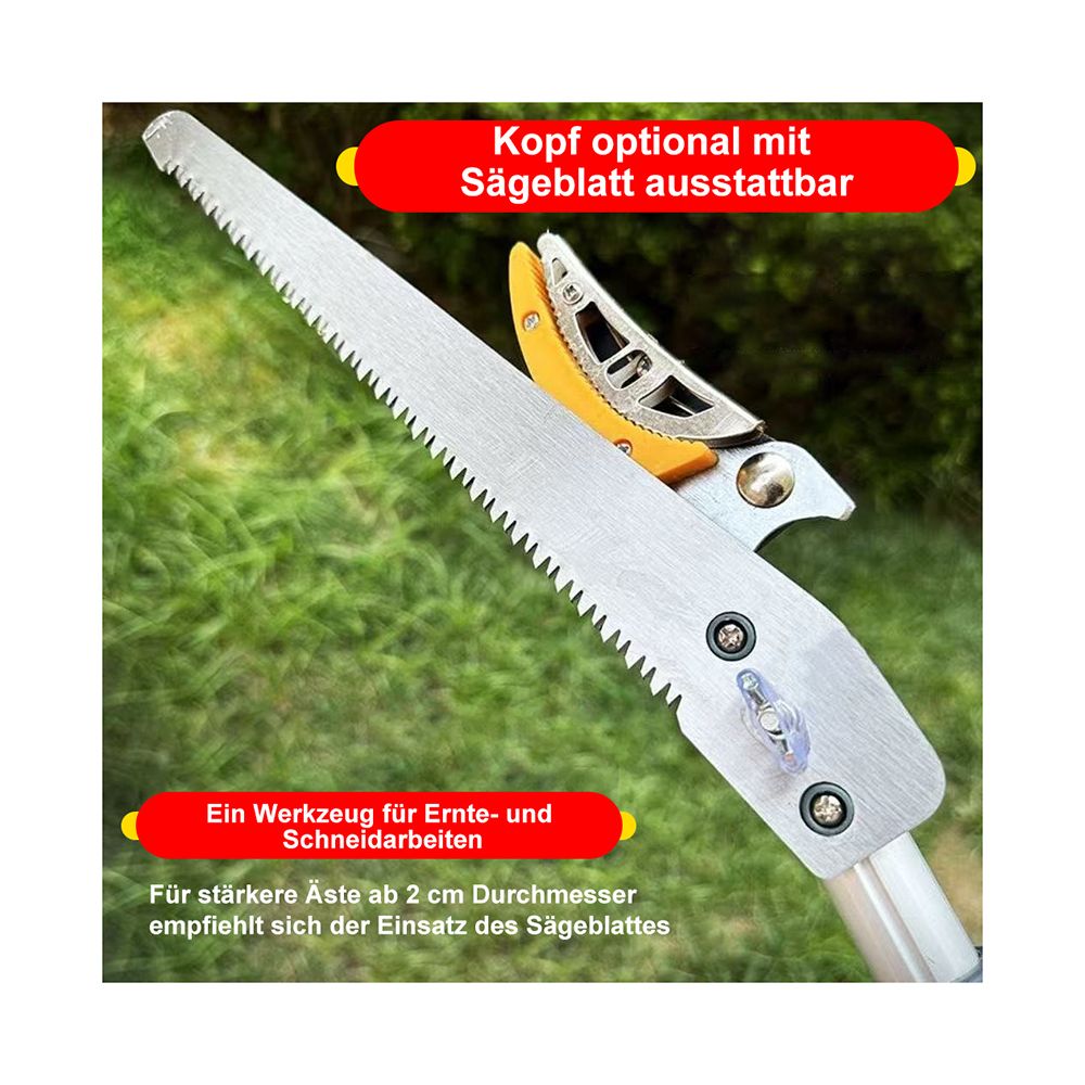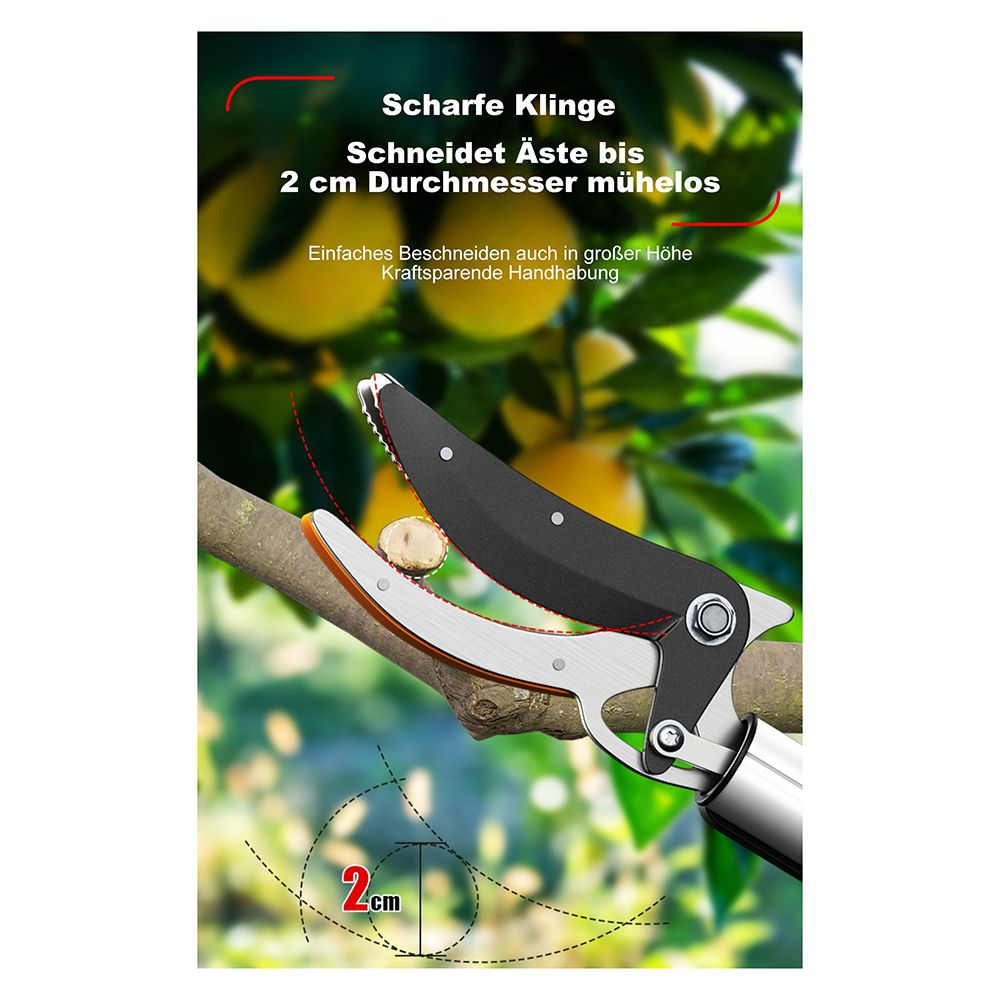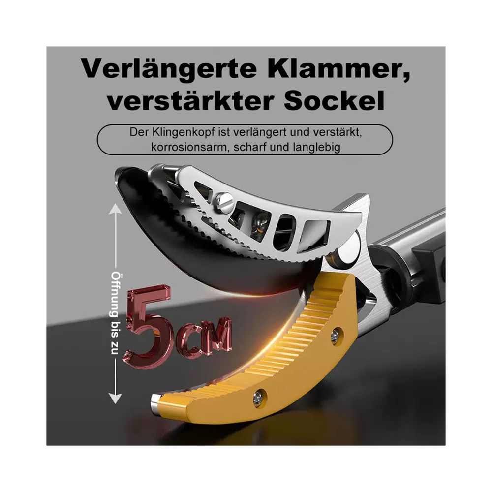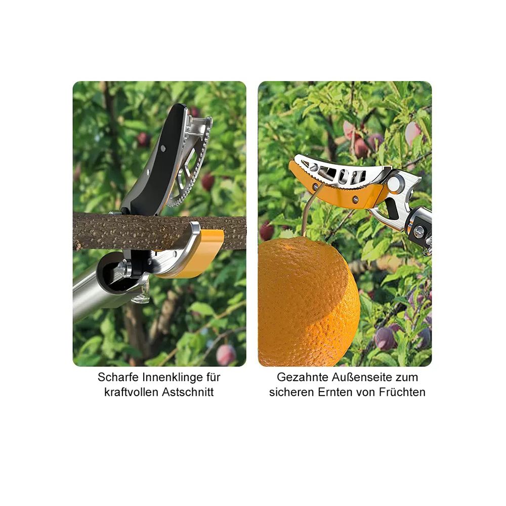 - starke Mangan-Klinge inklusive Klemmfunktion, die Obst oder Früchte beim Pflücken halten kann