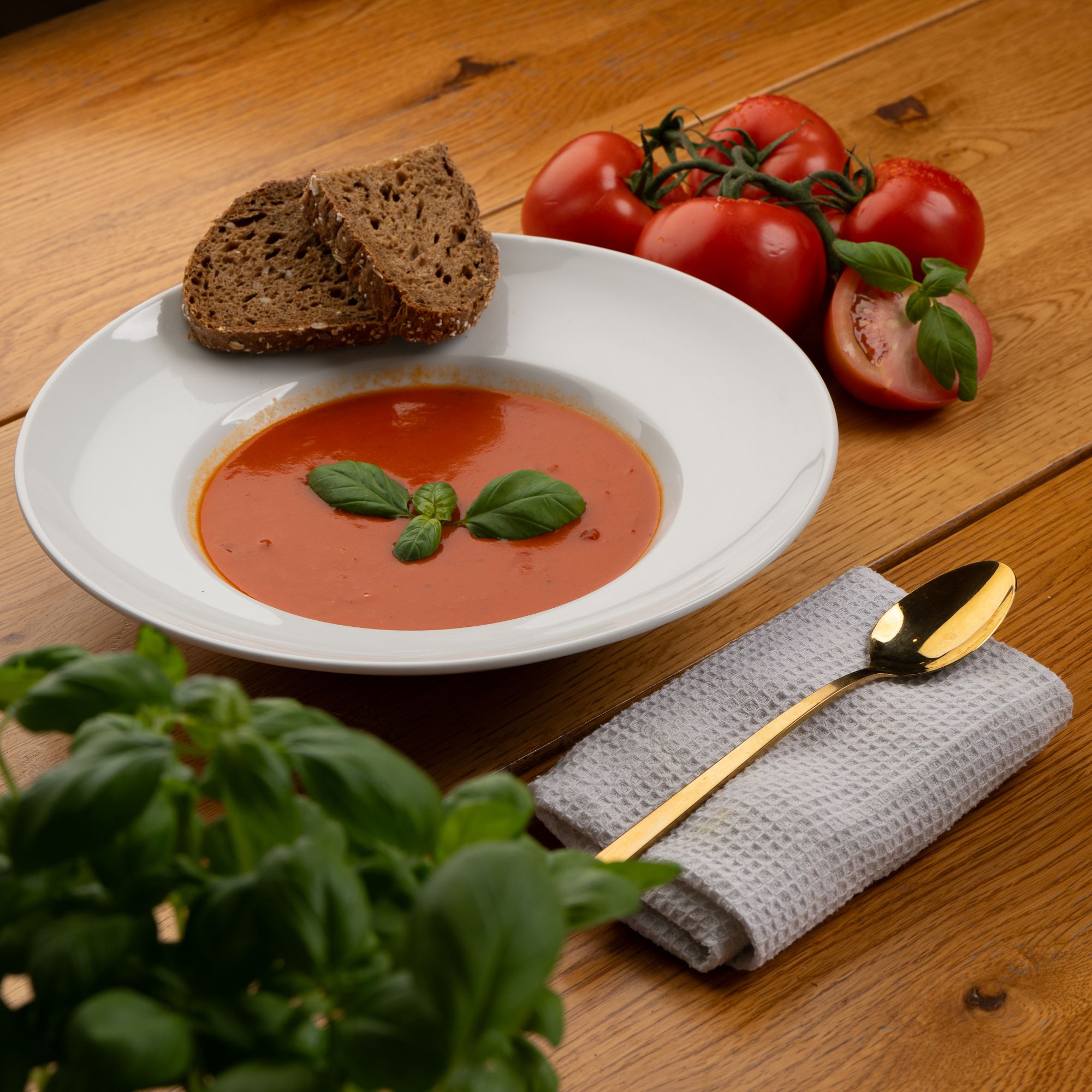 - Tomatensuppe mit Sahne und Ingwer verfeinert