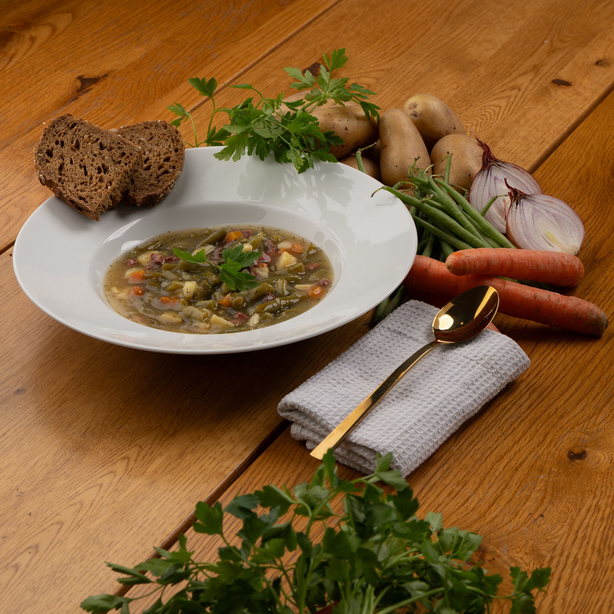 - Bohnentopf mit zartem Rindfleisch und Kartoffeln