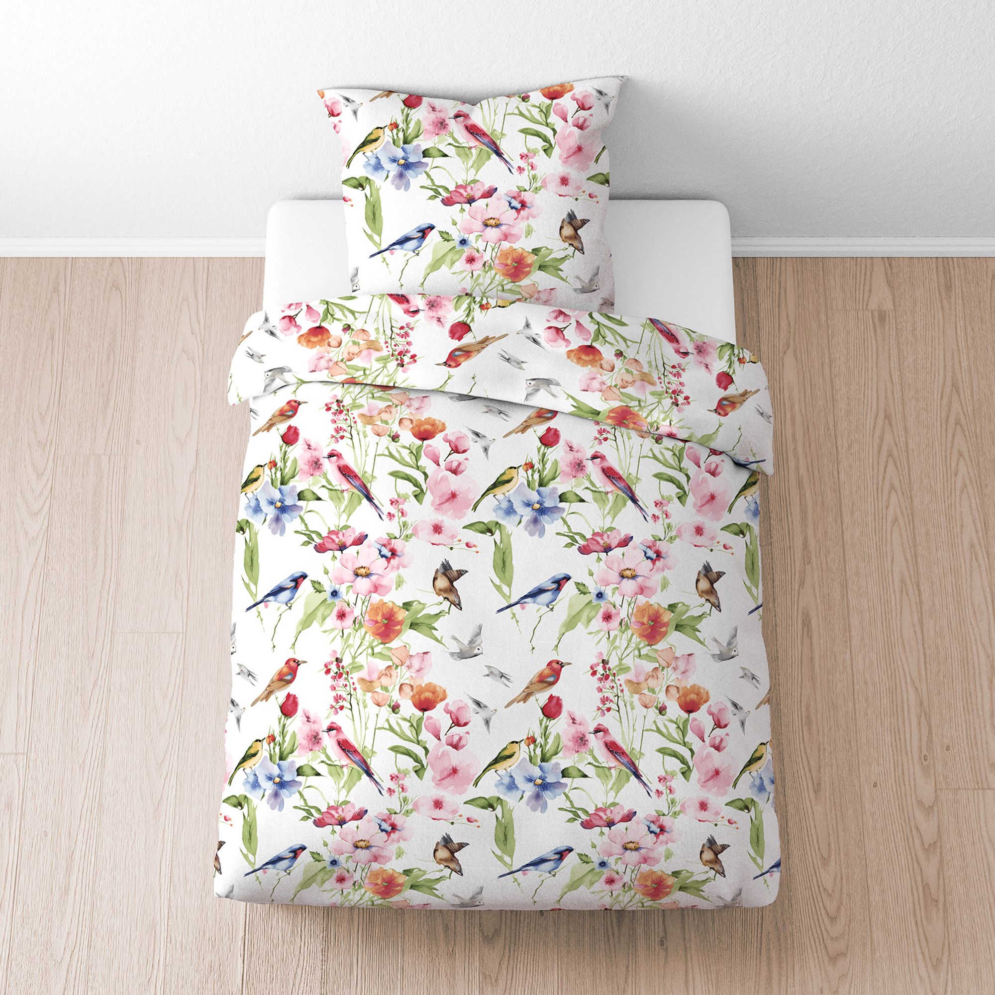 Frühlingshafte Seersucker-Bettwäsche mit Vogel-Design