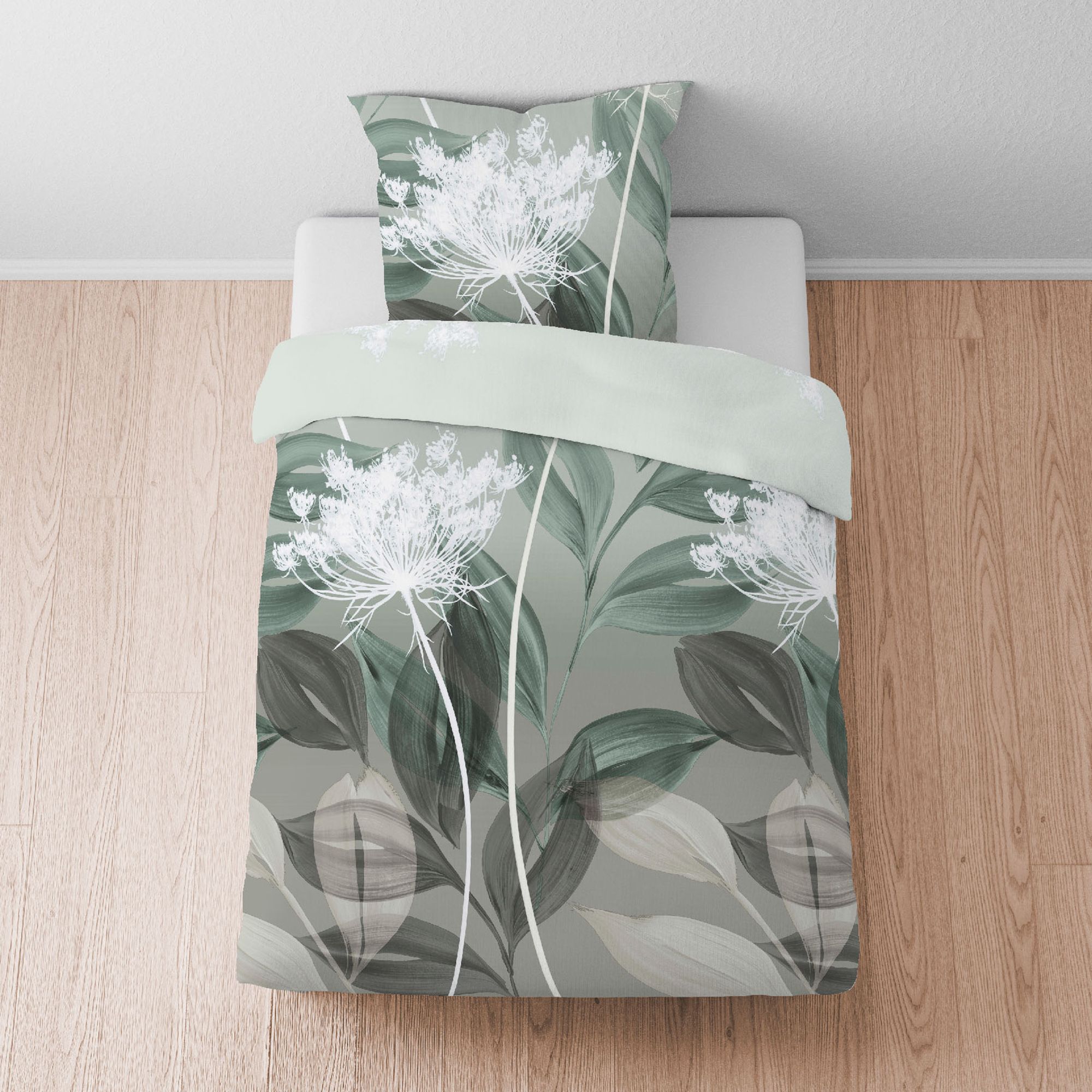 Die Bettwäsche von biberna® aus zwei Teilen für ein Einzelbett