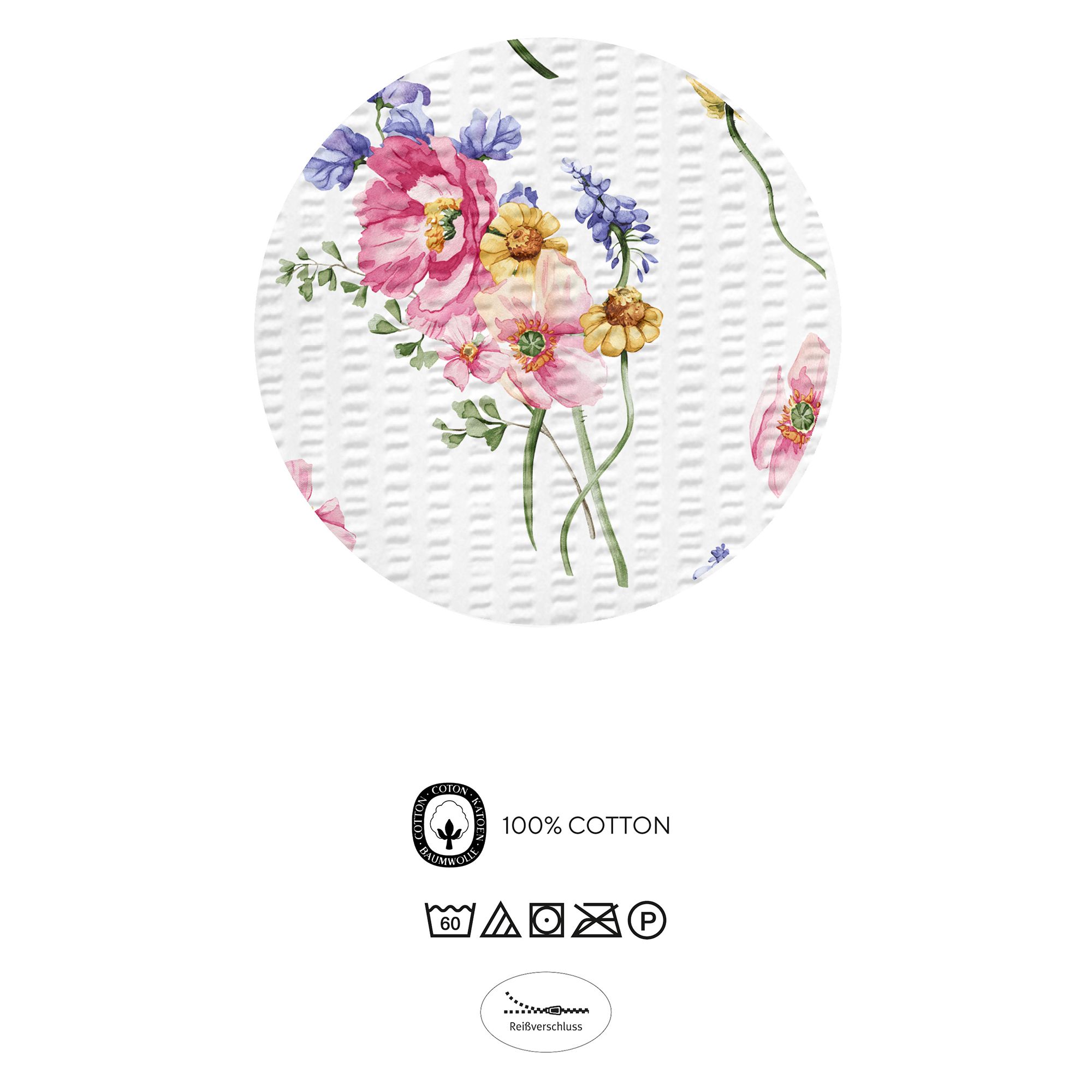 Mit der Baumwoll Seersucker-Bettwäsche von biberna® erhält dein Schlafzimmer einen frischen und eleganten Anstrich. Das liebevoll gestaltete Sommerblumenmotiv auf Vorder- und Rückseite verleiht jedem Raum eine lebendige Wohlfühlatmosphäre. Die leichte, angenehm weiche Qualität schmiegt sich sanft an deine Haut und sorgt für erholsamen Schlaf.