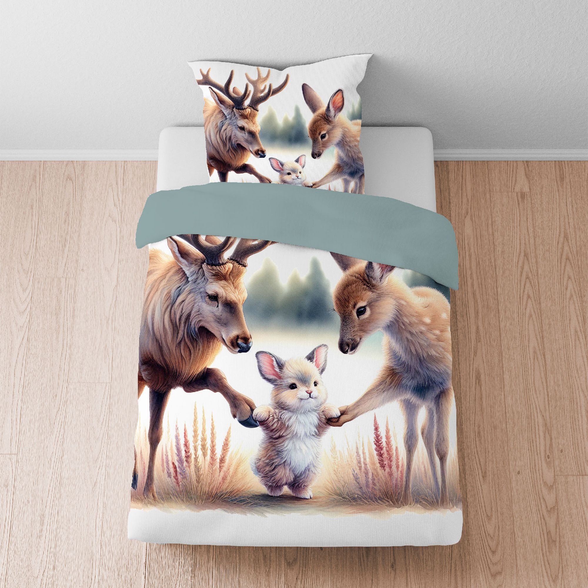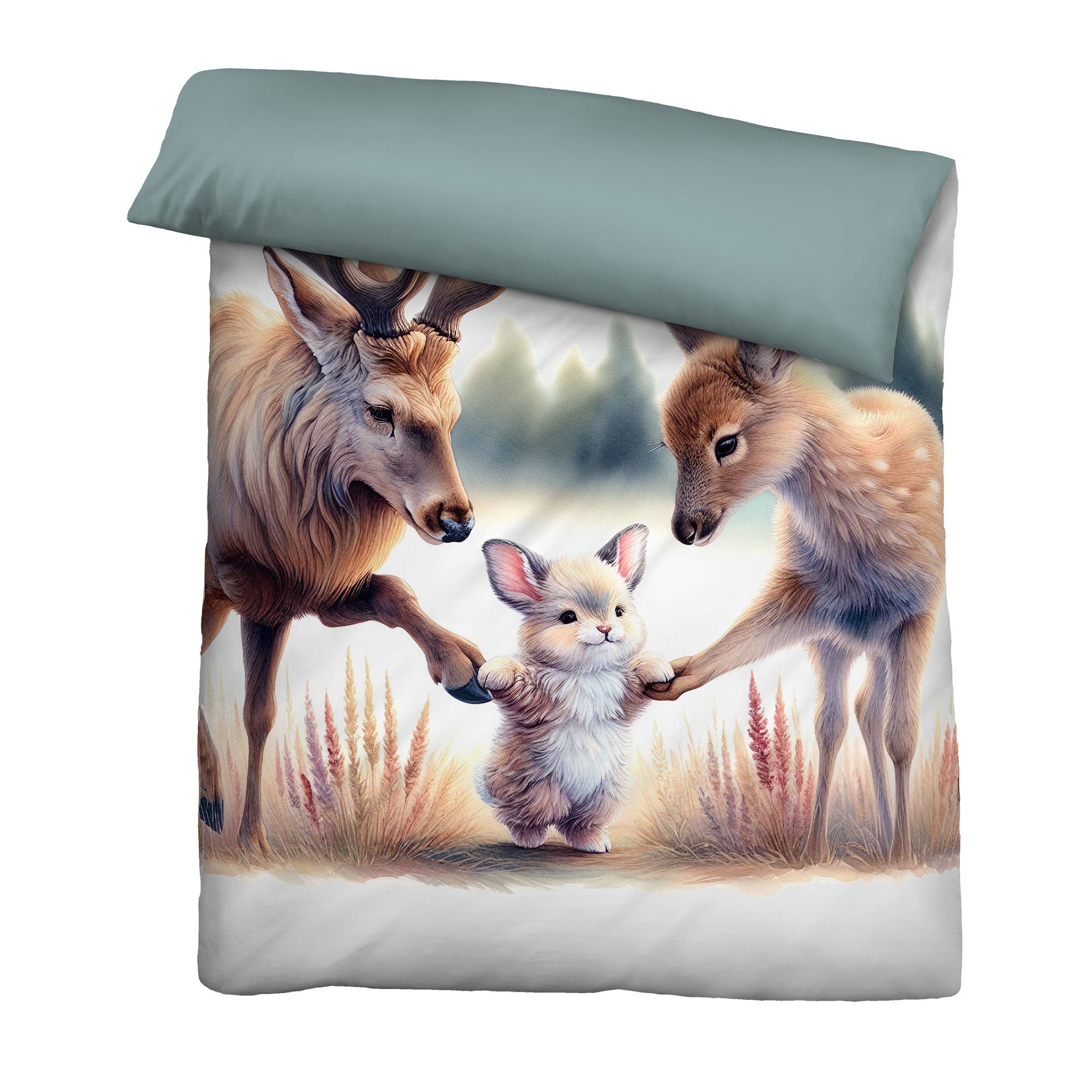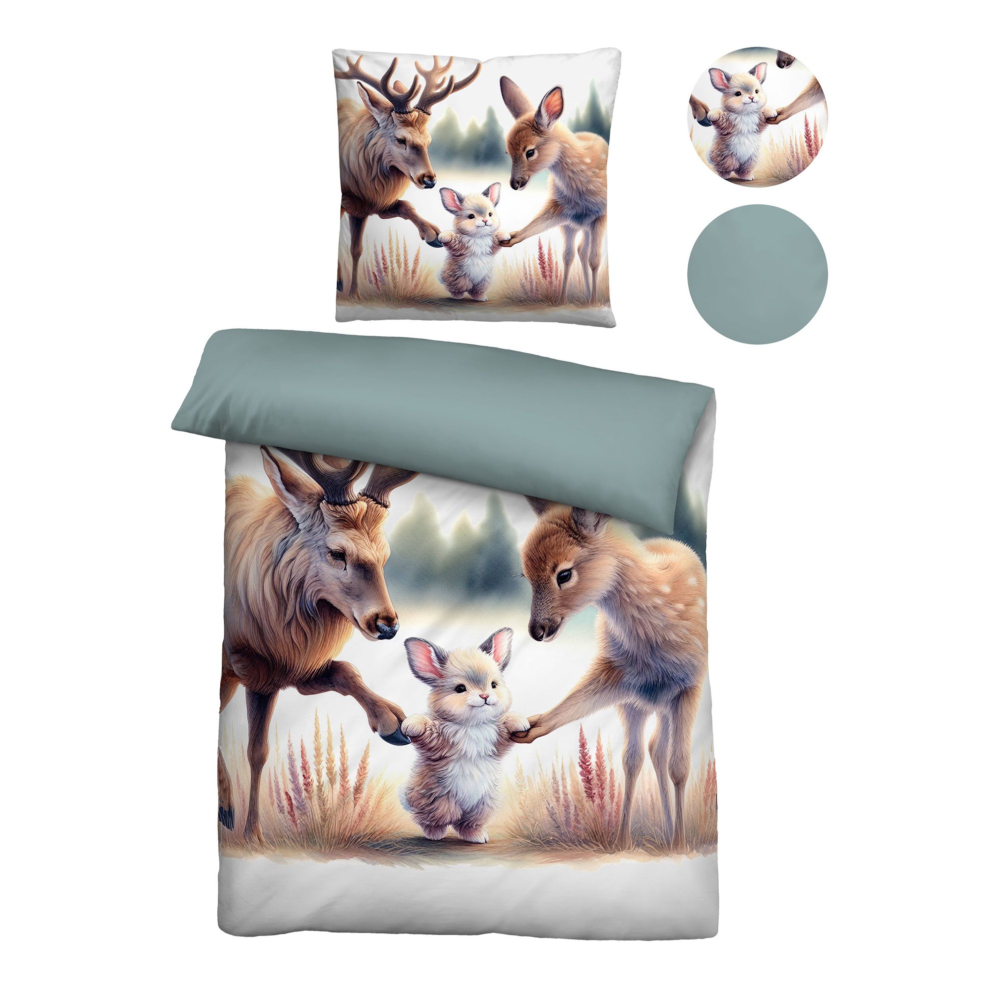 Hautsympathische biberna® Bettwäsche zum Wenden mit unifarbener Rückseite für ein Einzelbett