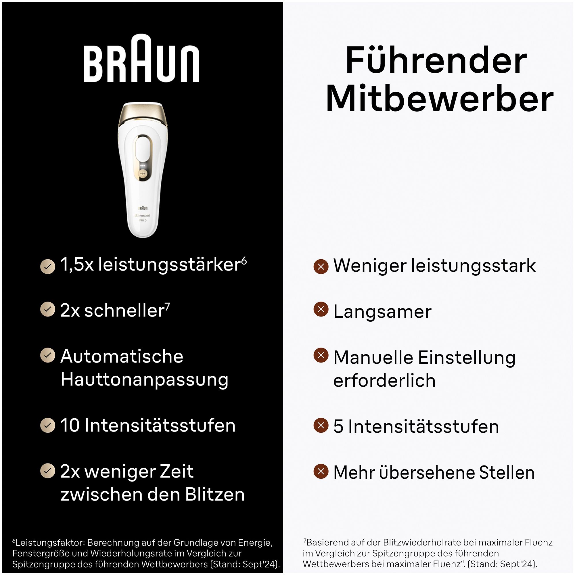 Langanhaltend glatte Haut, ohne ständiges Rasieren, ohne Hautirritationen: BRAUN macht's möglich! Mit dem Silk-Expert Pro 5 IPL-Haarentfernungsgerät erlbest du eine effektive und sichere Haarentfernung für seidig glatte Haut bis zu sechs Monaten!
