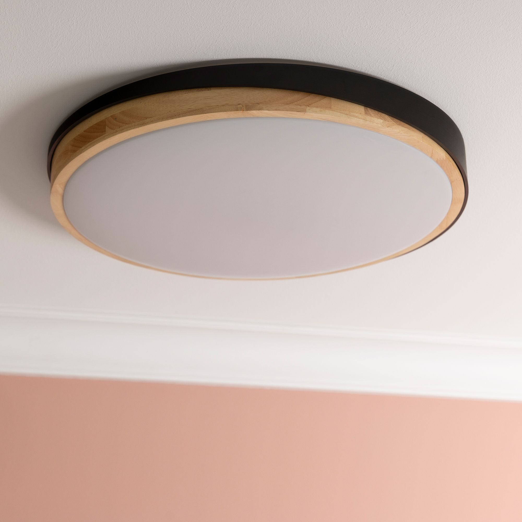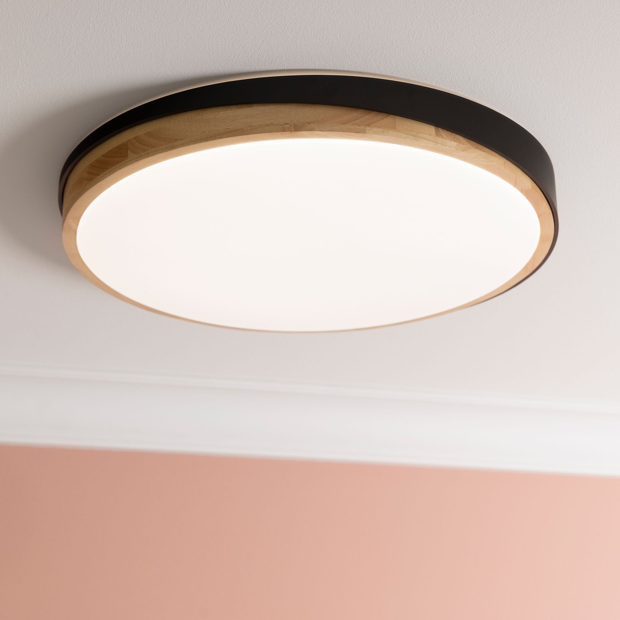 Moderne LED-Deckenleuchte mit Holzrahmen