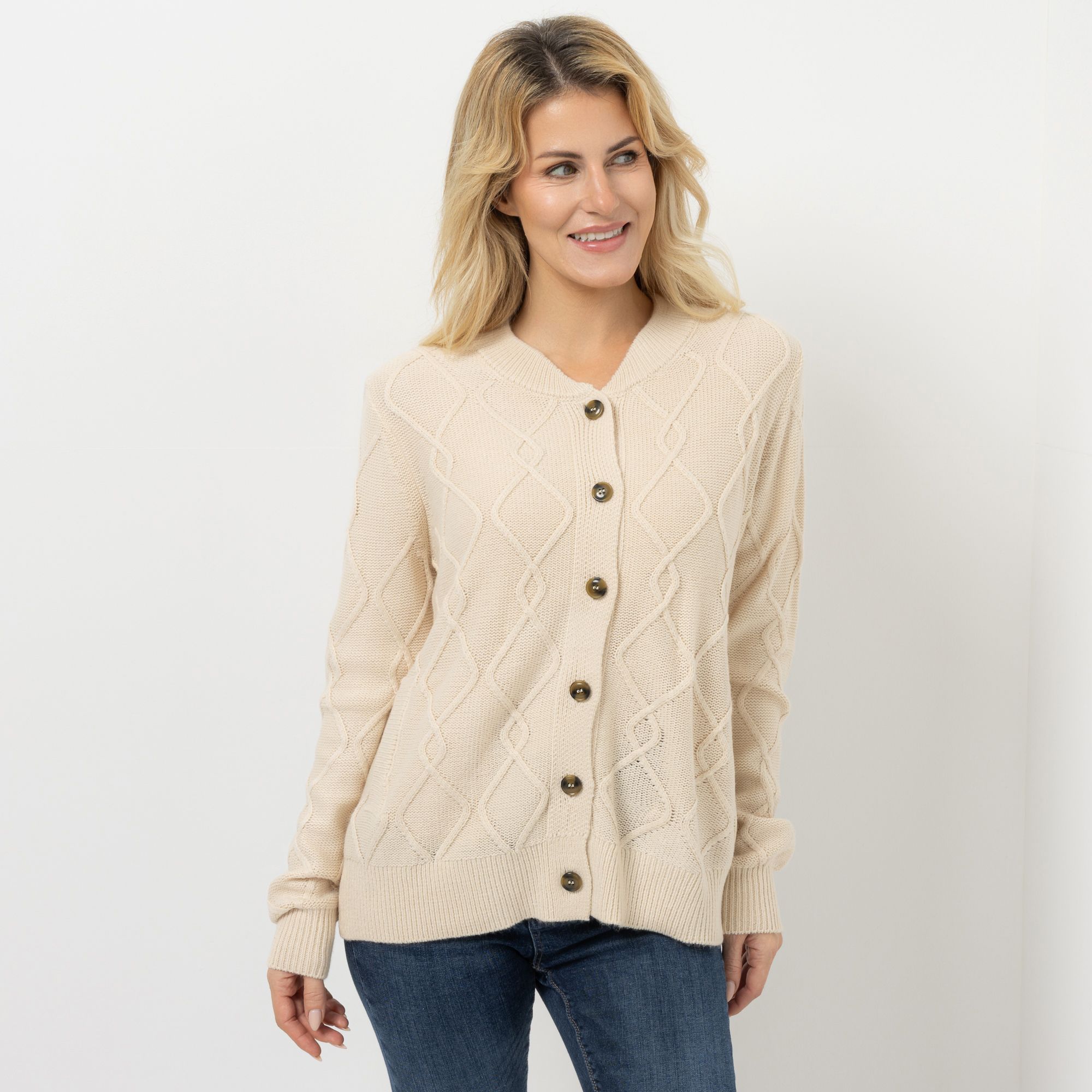 CASHMASOFT Cardigan Rundhalsausschnitt Cashmeregriff Zopfmuster
