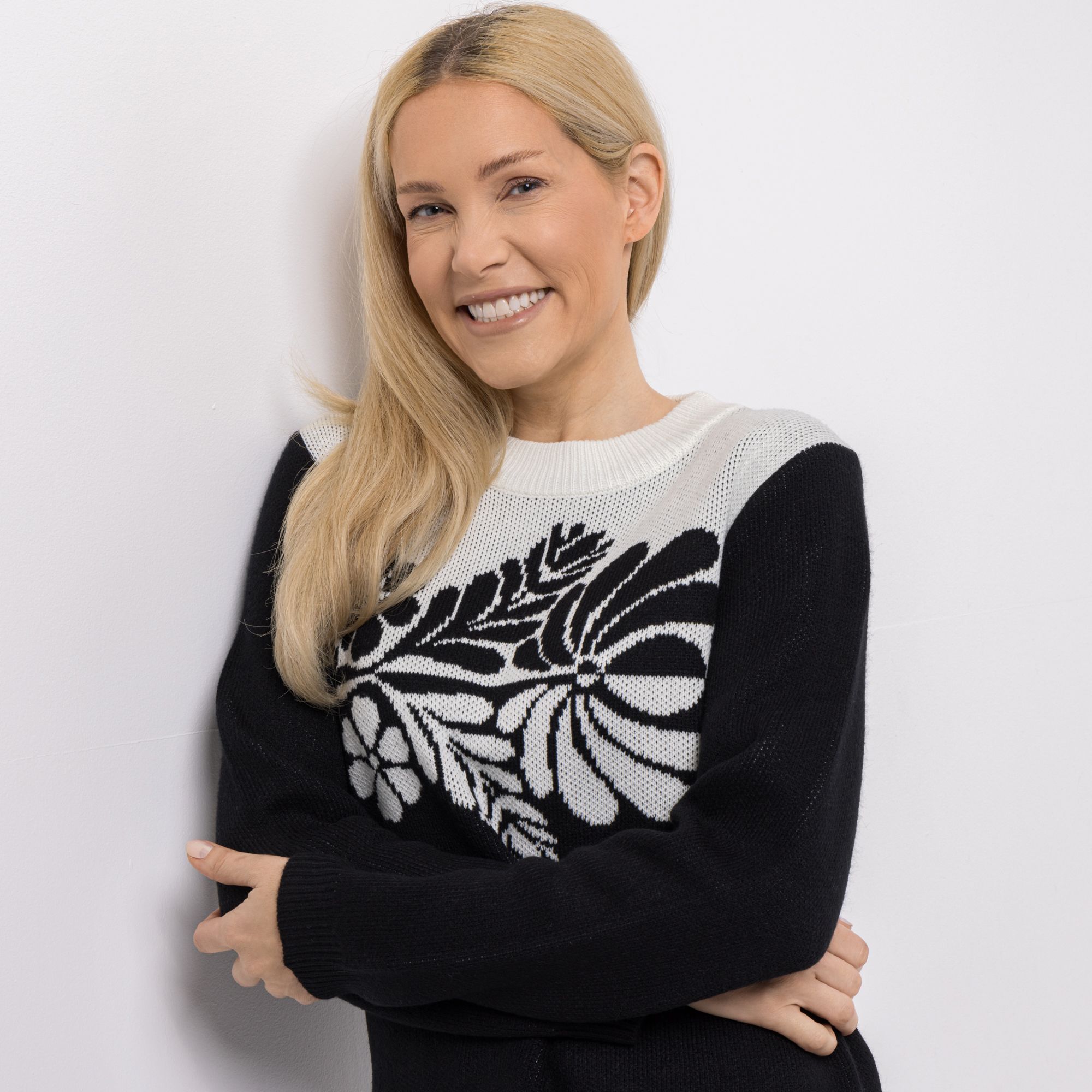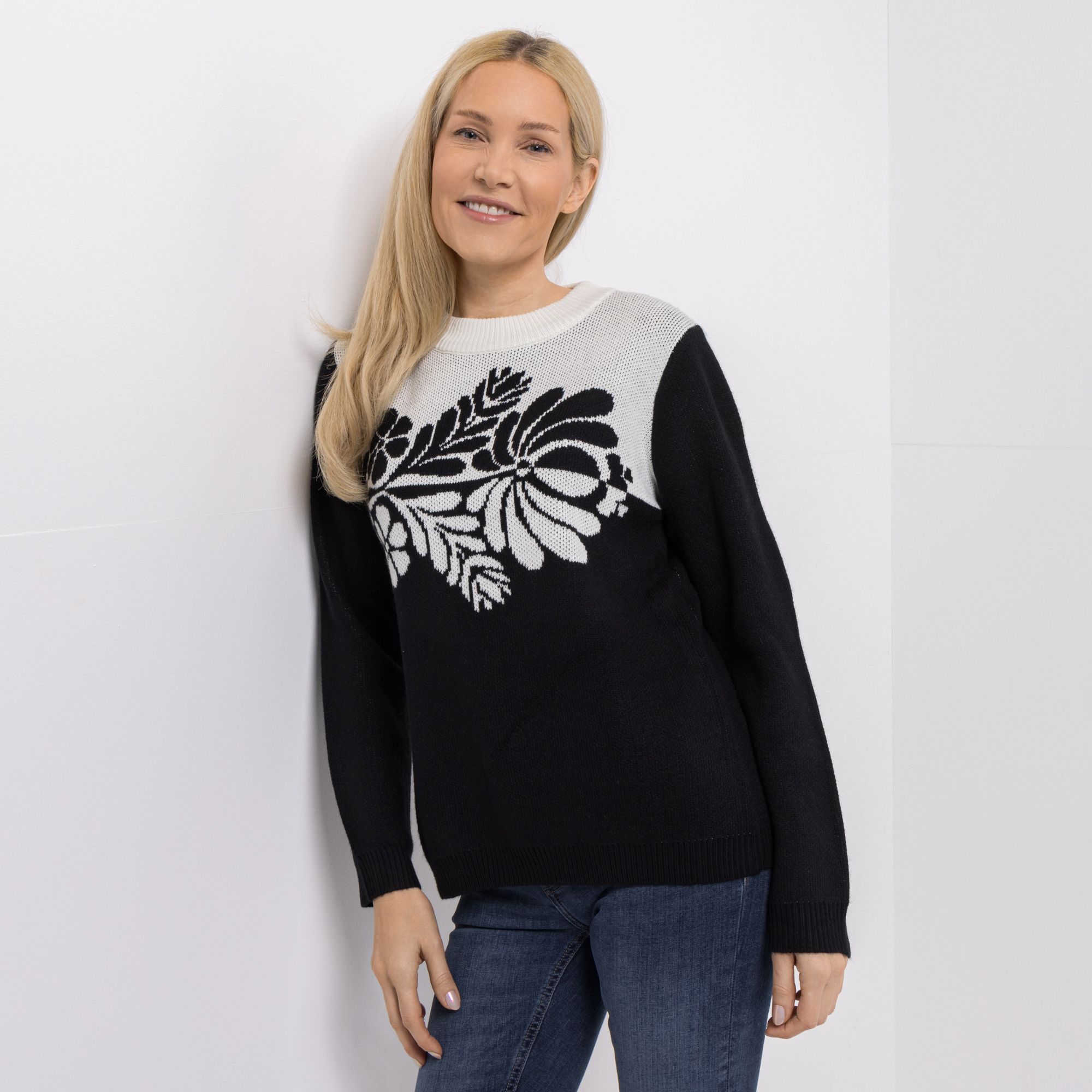 CASHMASOFT Pullover Rundhalsausschnitt Cashmeregriff Blumen-Jacquard