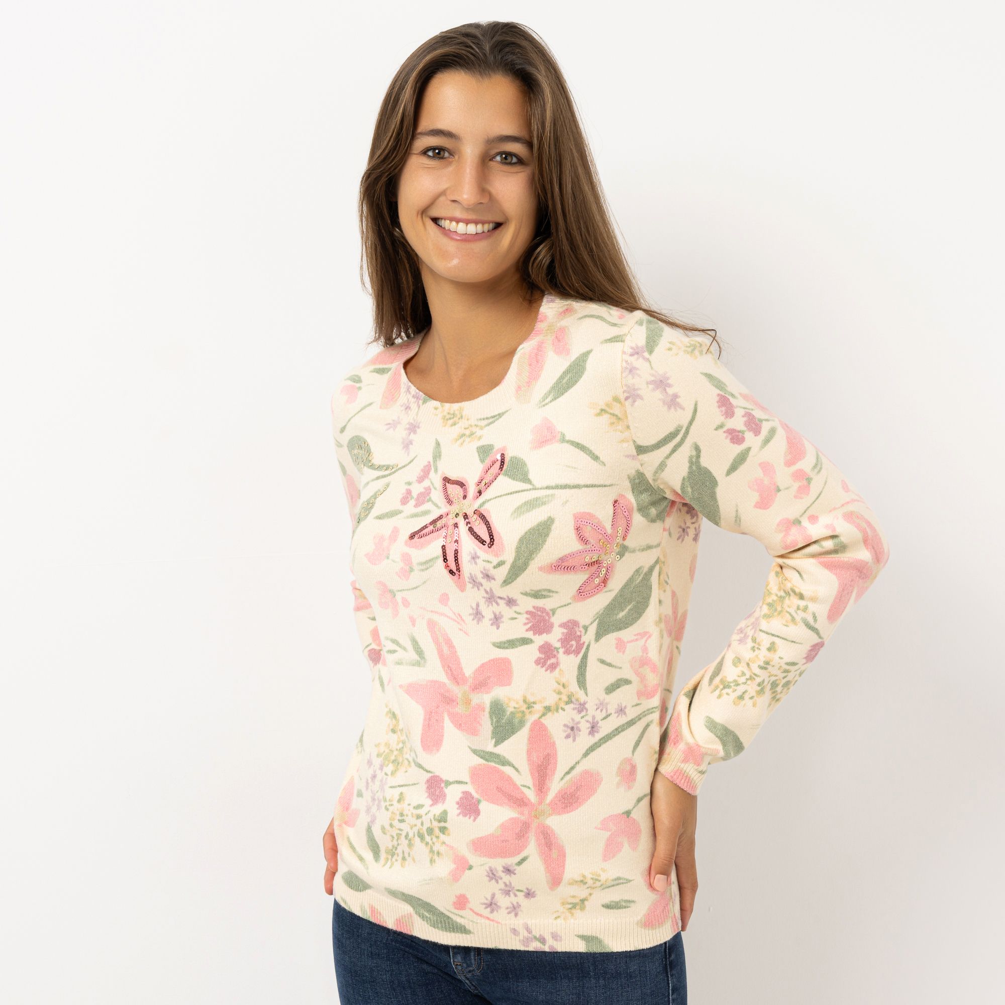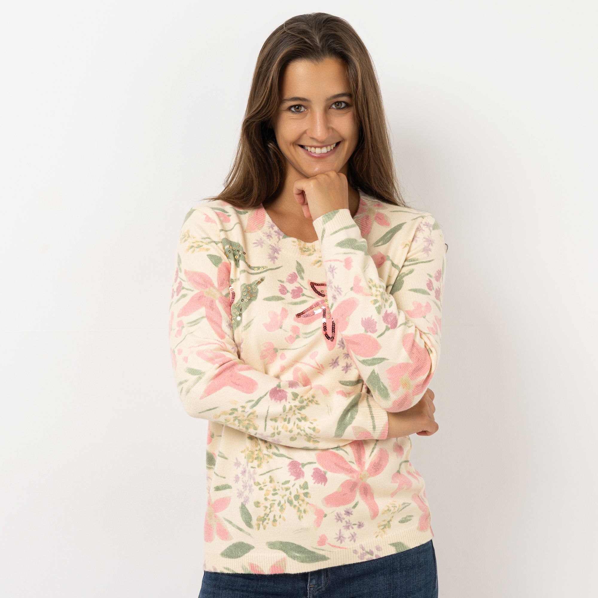 CASHMASOFT Pullover Rundhalsausschnitt Cashmeregriff floraler Druck