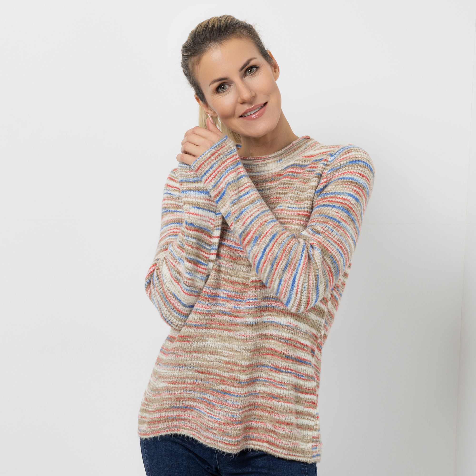 CASHMASOFT Pullover Stehkragen Mehrfarbig gestreift figurumspielend