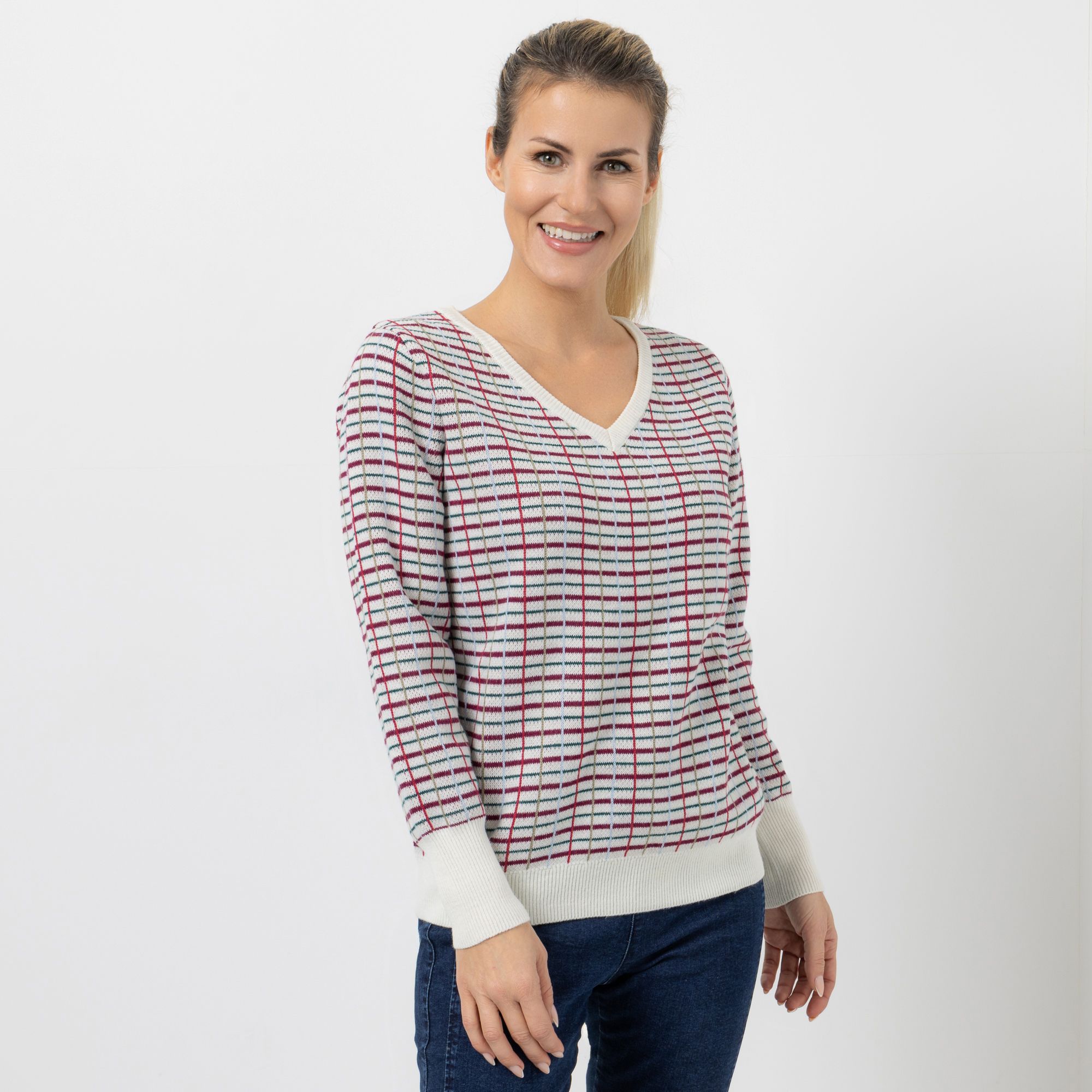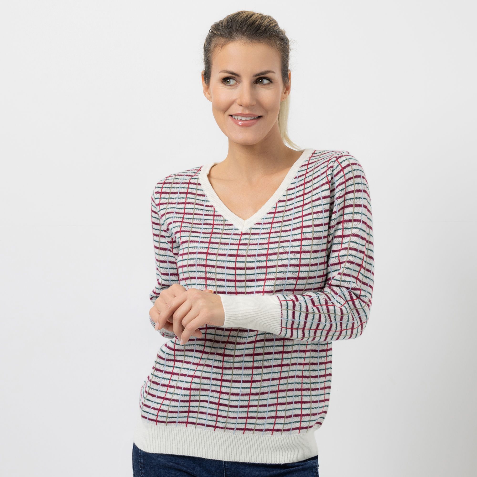 CASHMASOFT Pullover V-Ausschnitt Cashmeregriff Karo-Jacquard