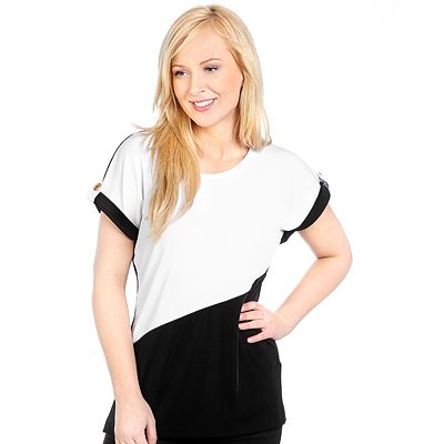 Dieses CITIKNITS Halbarm-Shirt mit rundem Ausschnitt und Colour-Blocking ist am angeschnittenen Ärmel mit kleinem Aufschlag und geknöpftem Riegel gearbeitet. Details